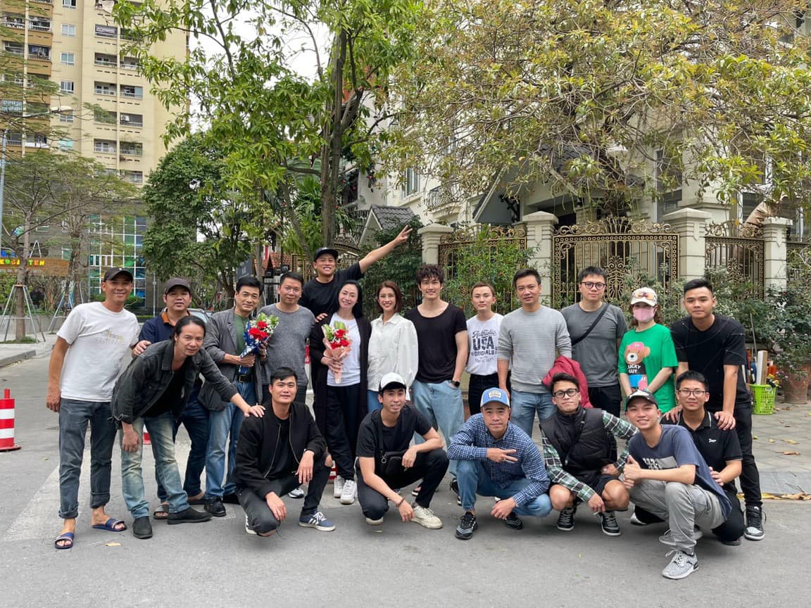 Quách Thu Phương và Xuân Trường nhận hoa của đoàn phim, chính thức chia tay ê kíp - ảnh: FBNV
