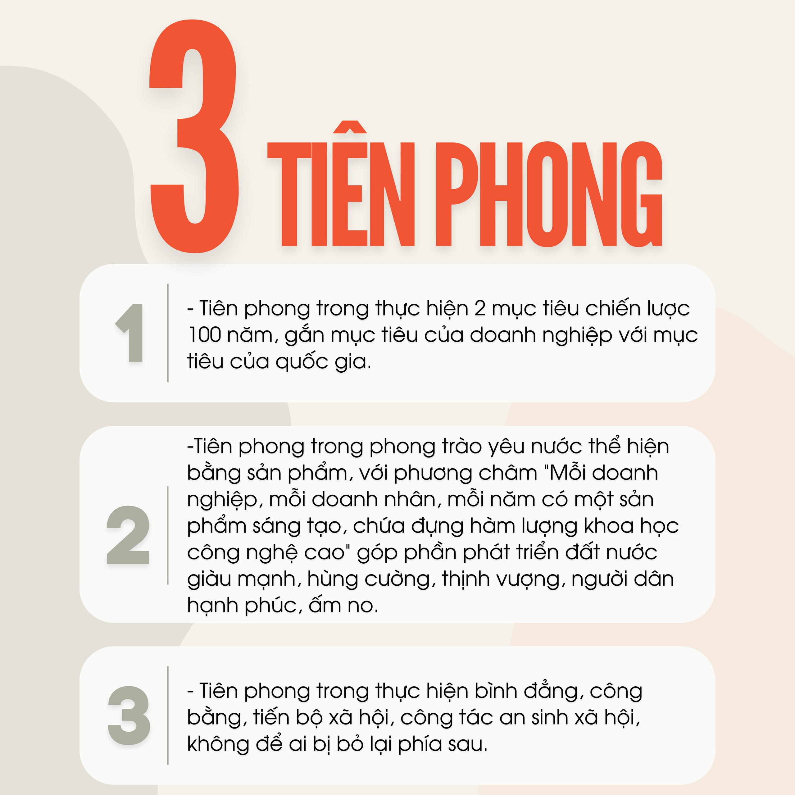 Như vậy, "3 tiên phong" không phải là ba khẩu hiệu tách rời. Đó là 3 định hướng và cũng là 3 trách nhiệm cơ bản của doanh nghiệp - để rồi khi kết nối cùng nhau, chúng sẽ tạo nên hình mẫu doanh nhân trong kỷ nguyên mới: dấn thân, nhân văn và sáng tạo.