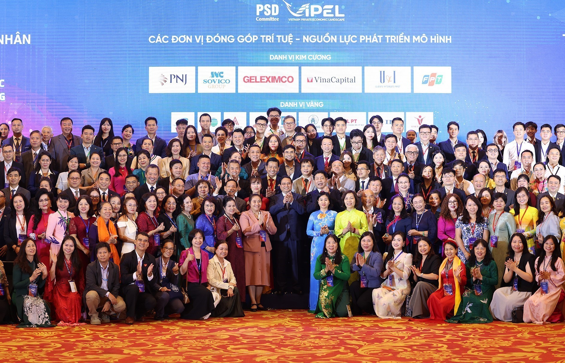 Thủ tướng Phạm Minh Chính với các đại biểu tham dự phiên họp cấp cao Toàn cảnh Kinh tế tư nhân lần thứ nhất (ViPEL 2025)