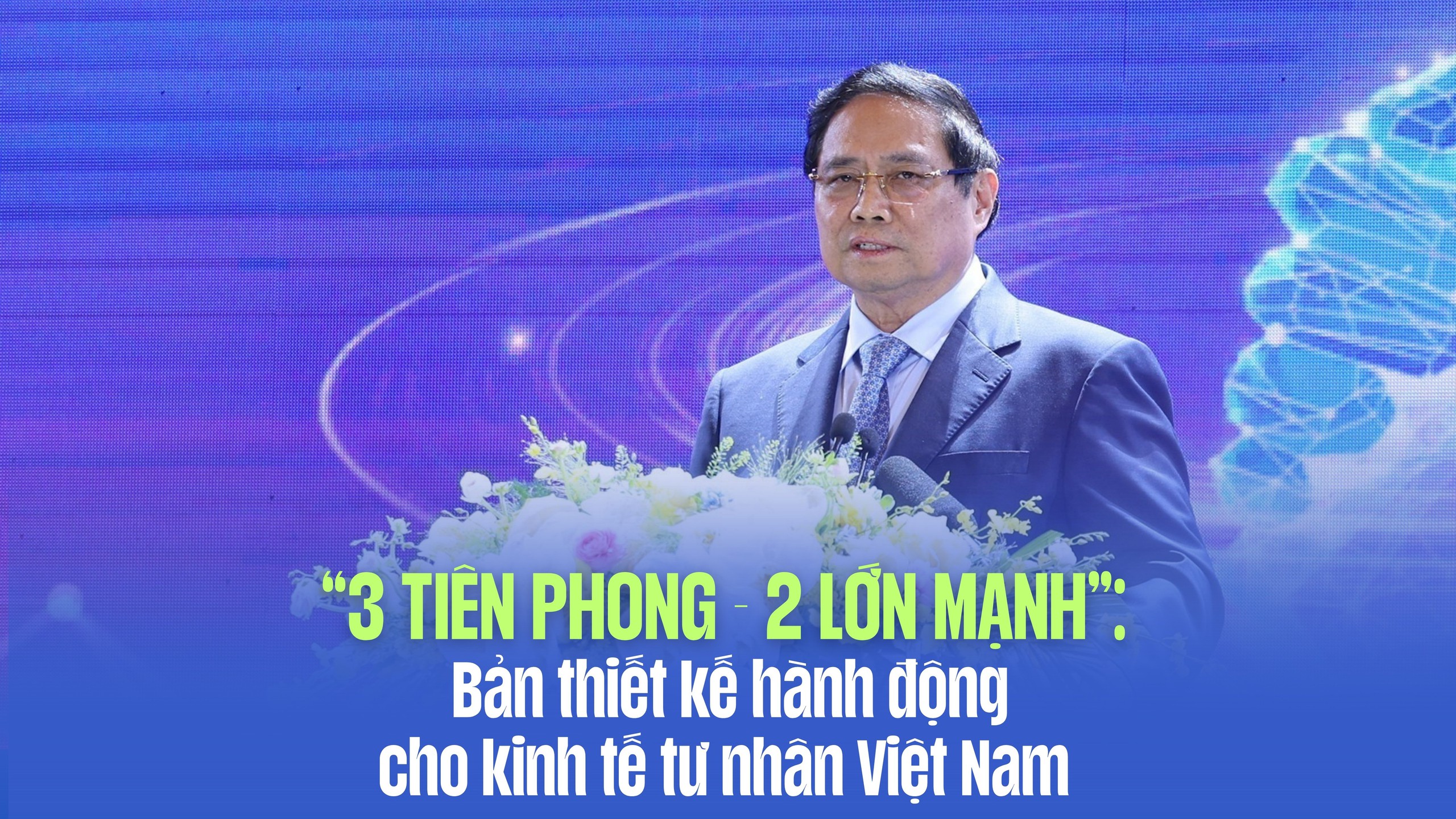Tại đó, như Thủ tướng khẳng định, cộng đồng doanh nghiệp tư nhân phải thực hiện "3 tiên phong, 2 lớn mạnh" để đạt được 1 mục tiêu xuyên suốt: Kinh tế tư nhân là một động lực quan trọng nhất của nền kinh tế quốc gia, kết hợp hài hòa, hiệu quả với kinh tế nhà nước là chủ đạo, góp phần đưa đất nước bước vào kỷ nguyên mới phát triển giàu mạnh, văn minh, hùng cường, thịnh vượng.