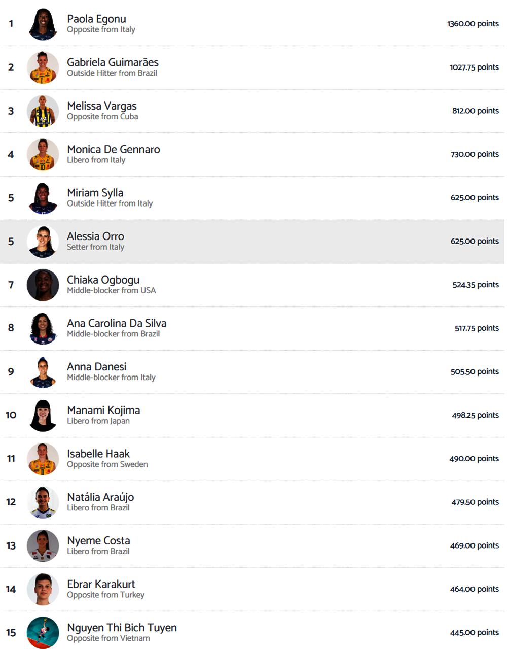 Không có bất kỳ tuyển thủ bóng chuyền nữ nào của Đức hay Ba Lan, bất kể là chơi ở vị trí nào, góp mặt trong top 15 thế giới năm 2024.