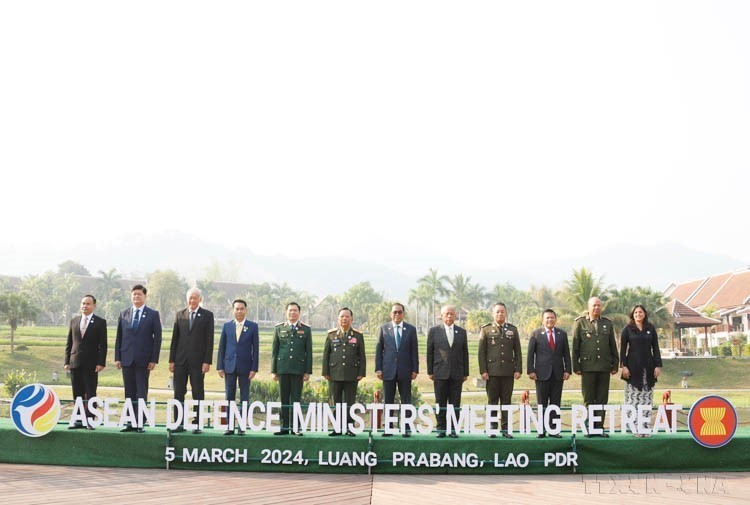Các trưởng đoàn tham dự Hội nghị hẹp Bộ trưởng Quốc phòng các nước ASEAN (ADMM Hẹp), tại Luang Prabang (Bắc Lào), ngày 5/3/2024. Ảnh: Phạm Kiên - TTXVN