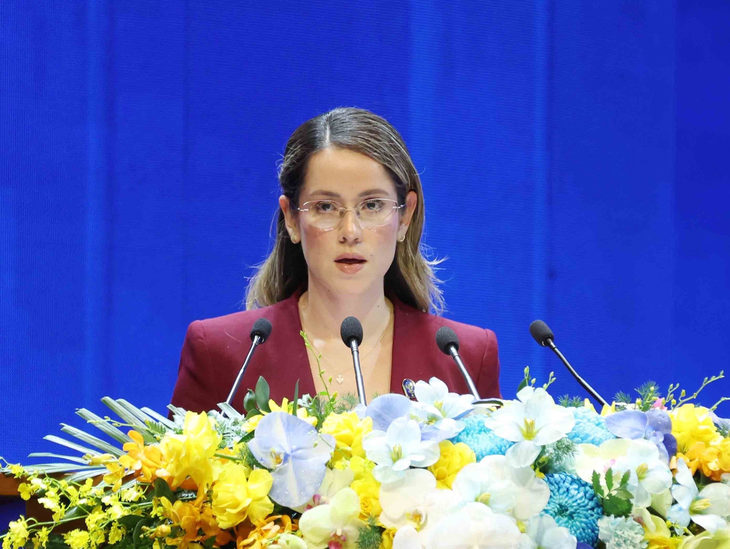 Đại diện Cộng hoà Nicaragua tham luận tại phiên họp. Ảnh: Phương Hoa - TTXVN