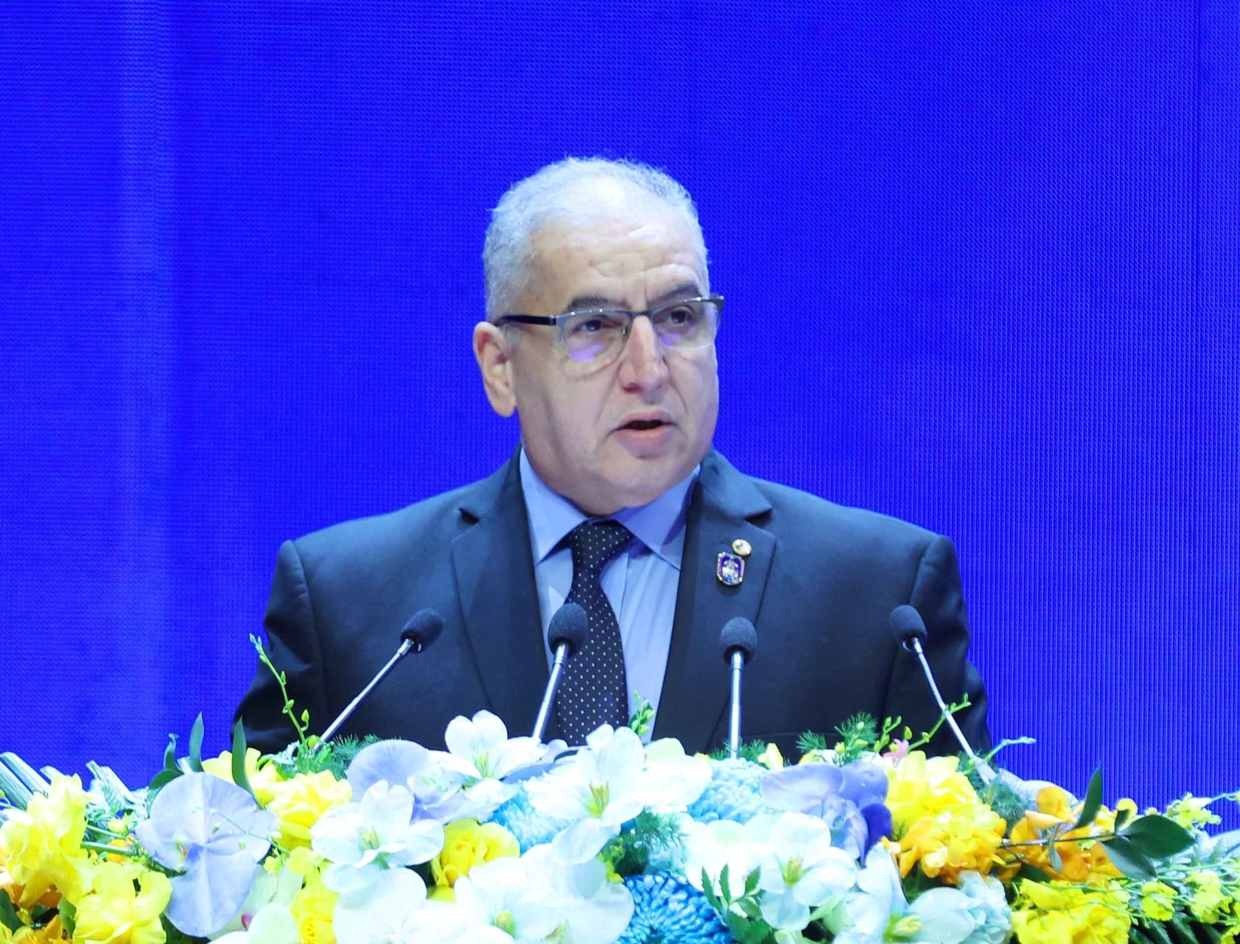 Tổng Thư ký Bộ Ngoại giao, Cộng đồng Quốc gia ở nước ngoài và Các vấn đề châu Phi của Cộng hòa Dân chủ Nhân dân Algeria Lounes Magramane phát biểu tại Phiên thảo luận. Ảnh: Phương Hoa - TTXVN