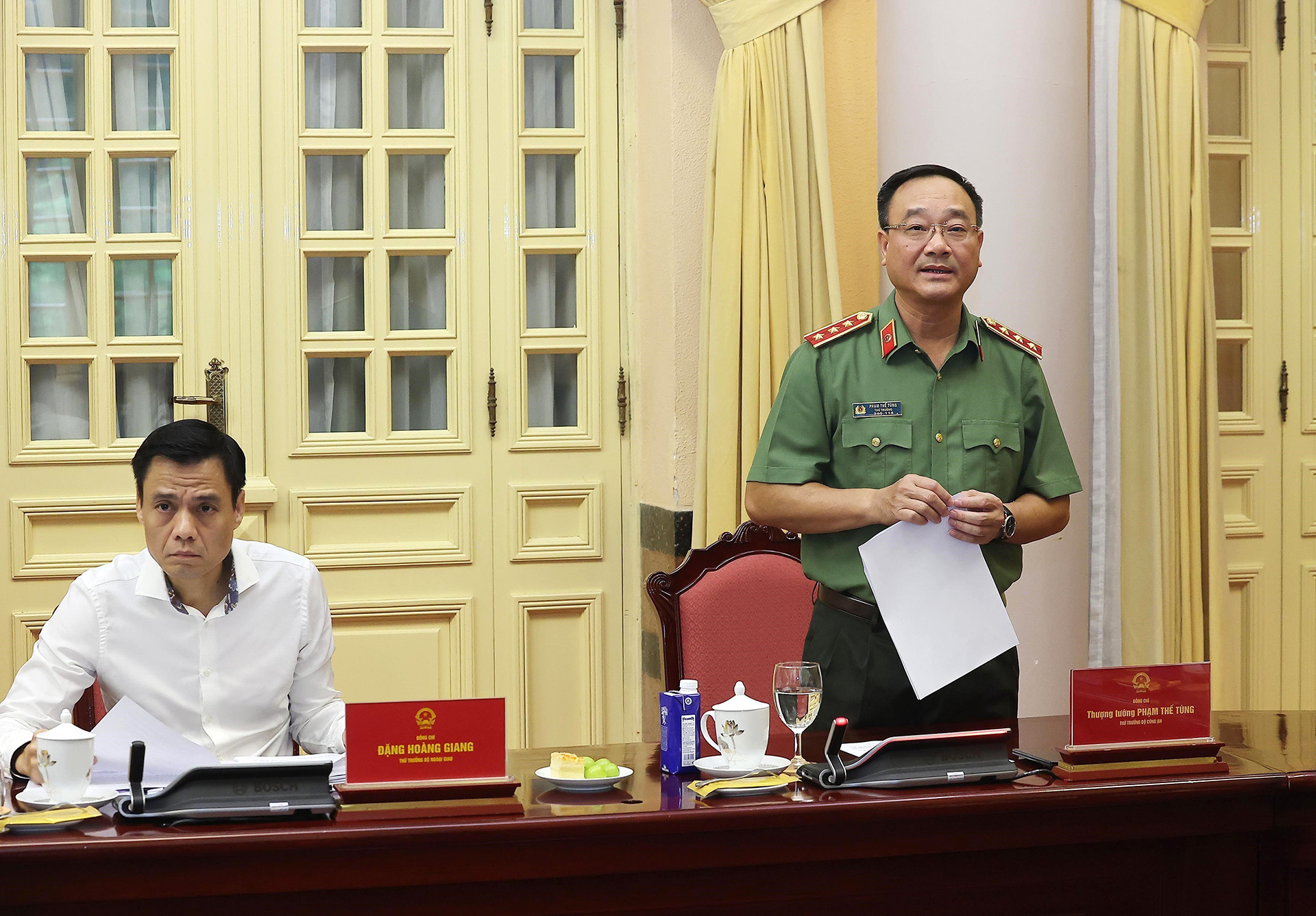 Thượng tướng Phạm Thế Tùng, Thứ trưởng Bộ Công an, Phó Trưởng ban Thường trực Ban Chỉ đạo Lễ mở ký Công ước Hà Nội phát biểu