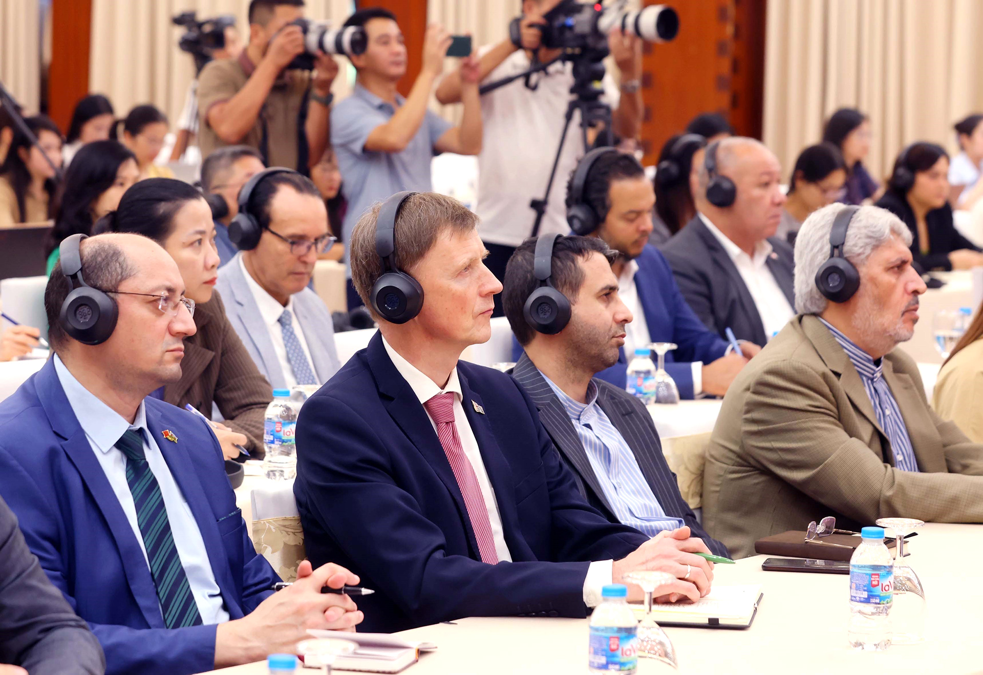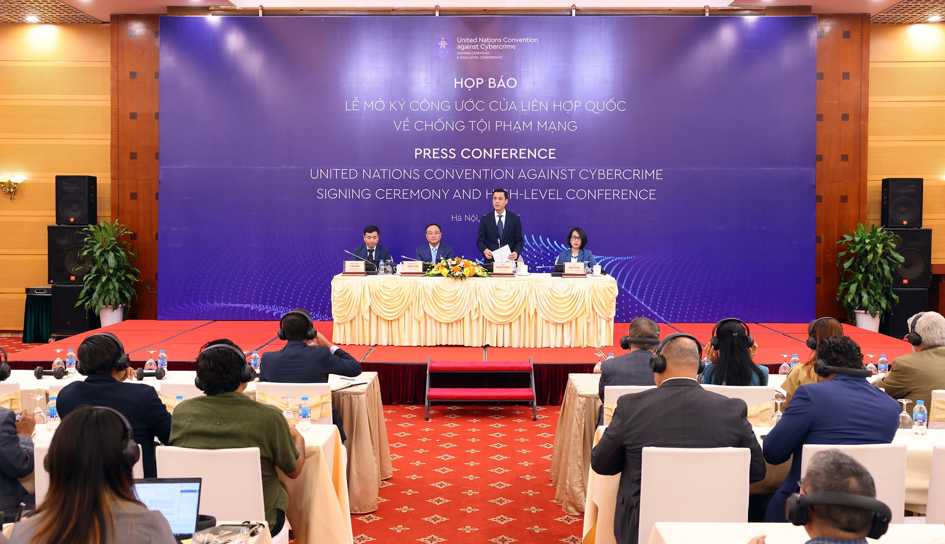 Các đại biểu quốc tế dự Họp báo Lễ mở ký Công ước của Liên hợp quốc về chống tội phạm mạng