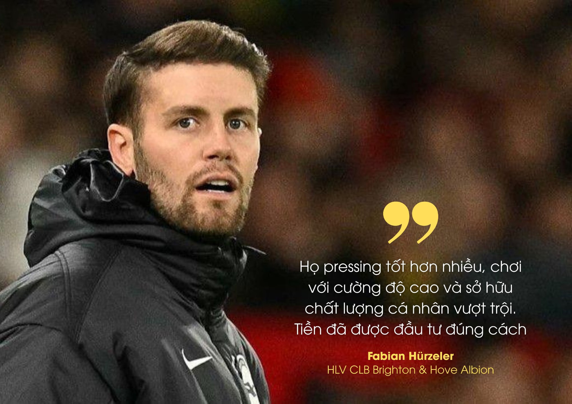 Fabian Hürzeler – HLV của Brighton – thừa nhận: "Họ pressing tốt hơn nhiều, chơi với cường độ cao và sở hữu chất lượng cá nhân vượt trội. Tiền đã được đầu tư đúng cách." Câu nói ấy, với Man United, gần như là một lời khen hiếm hoi sau nhiều năm mua sắm thất bại.