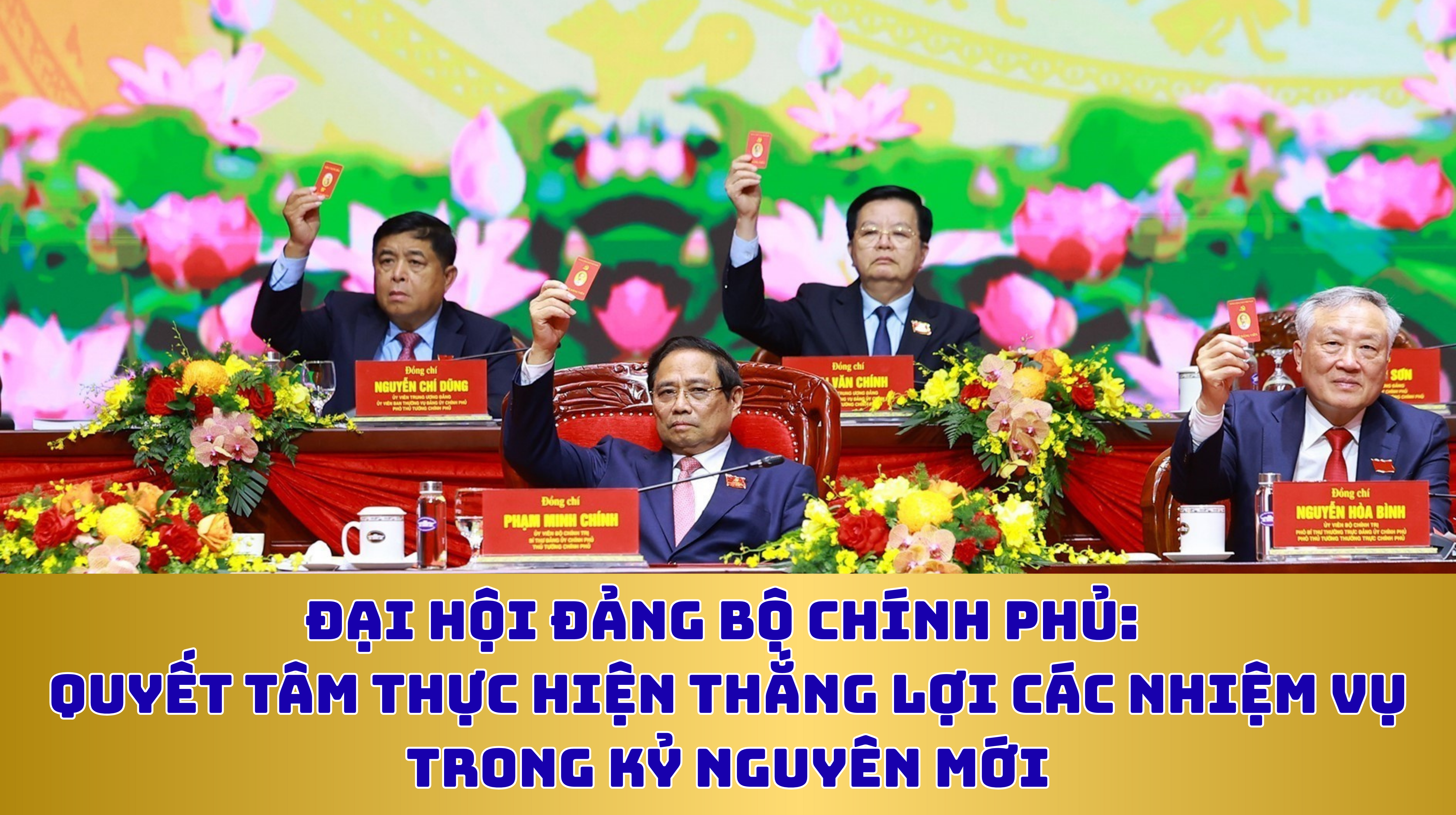Đoàn Chủ tịch biểu quyết thông qua Nghị quyết Đại hội đại biểu Đảng bộ Chính phủ lần thứ I, nhiệm kỳ 2025 - 2030. Ảnh: Dương Giang-TTXVN