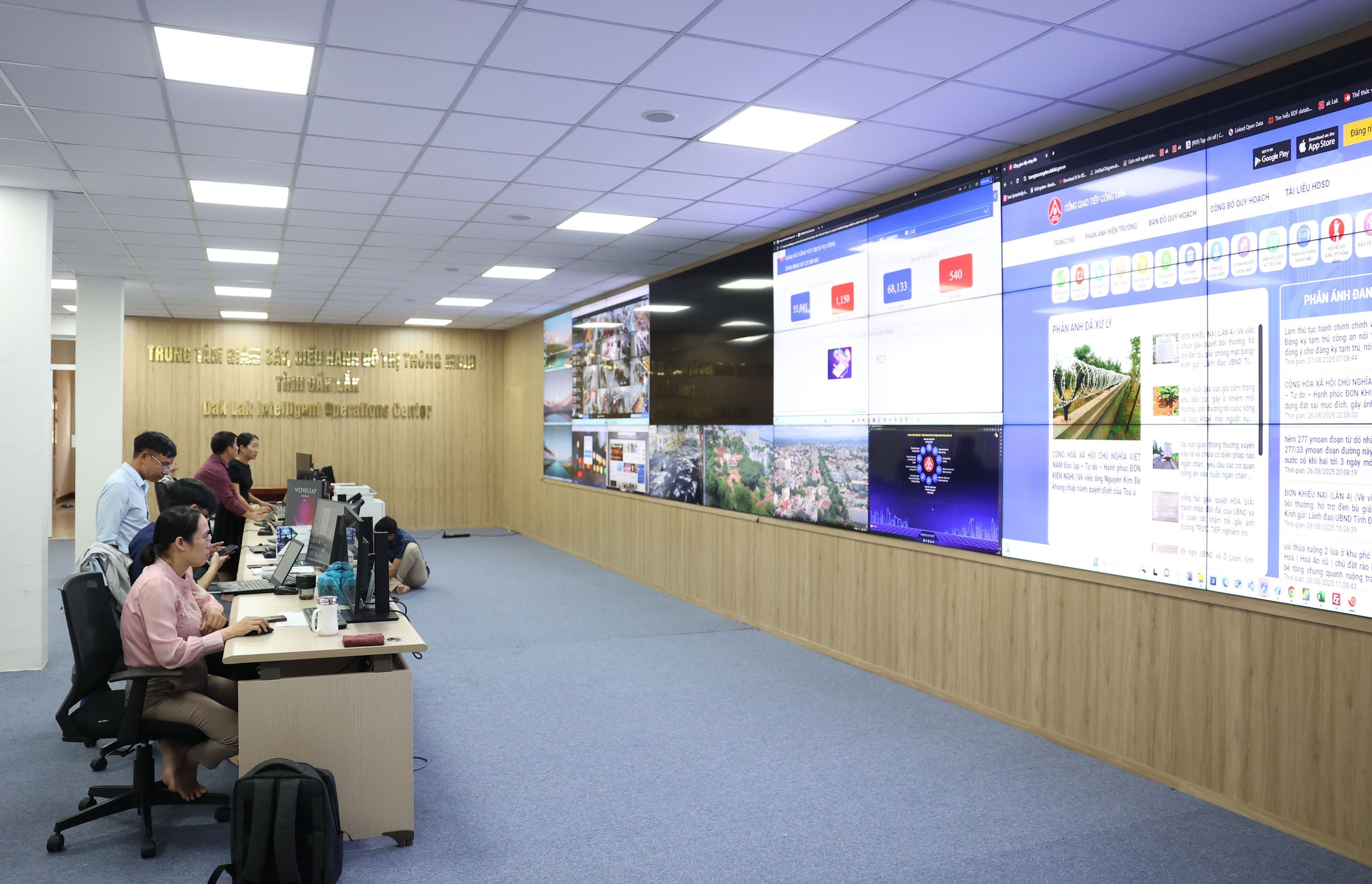 Trung tâm giám sát, điều hành đô thị thông minh tỉnh Đắk Lắk tạo lập và phân quyền cho các sở, ban, ngành và 102 xã phường trên toàn tỉnh. Ảnh: Tuấn Anh – TTXVN