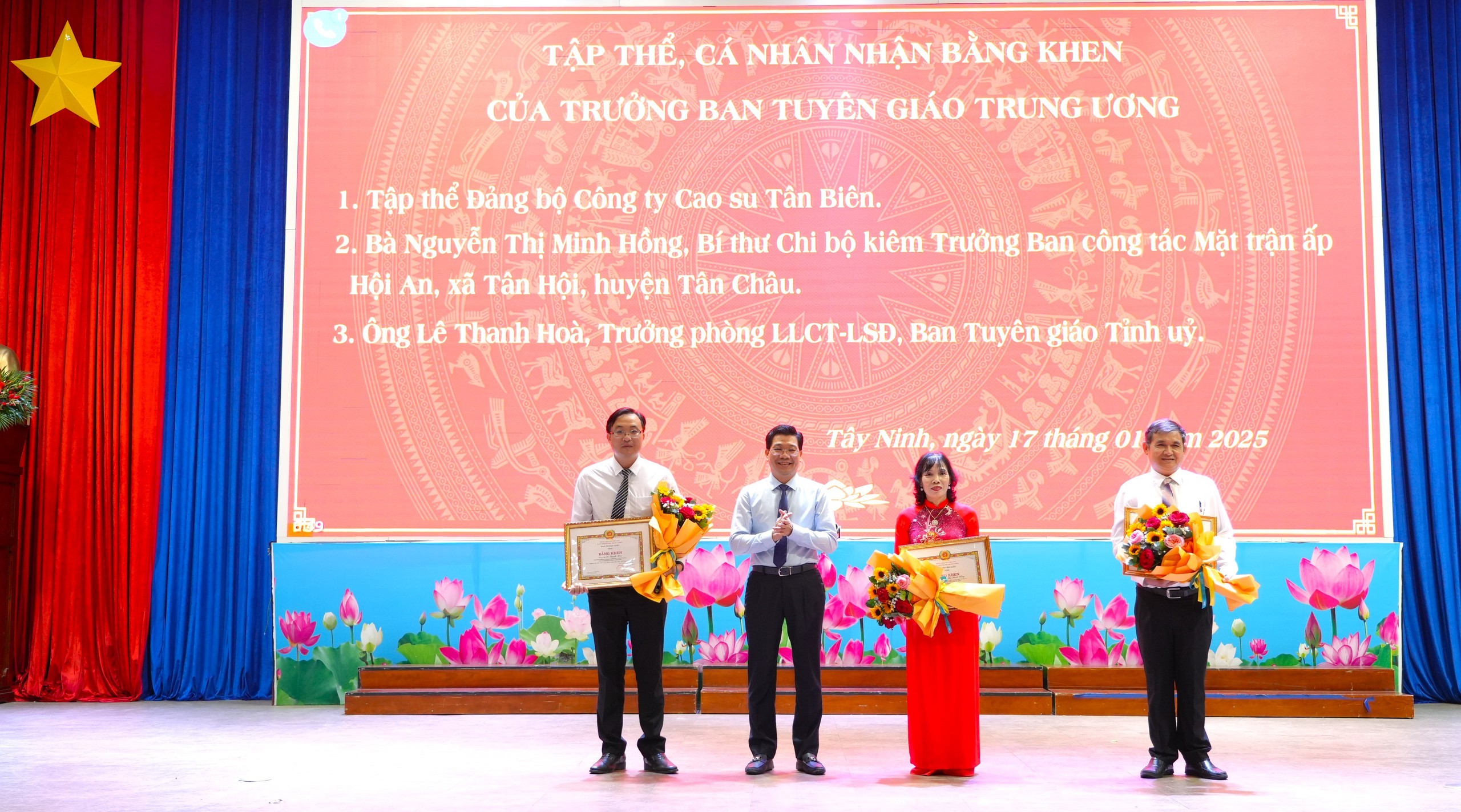 Nâng cao năng lực lãnh đạo, cầm quyền và sức chiến đấu của Đảng trong giai đoạn hiện nay. Trong ảnh: Tặng Bằng khen của Trưởng Ban Tuyên giáo Trung ương cho 1 tập thể và 2 cá nhân thuộc tỉnh Tây Ninh có thành tích trong tham mưu thực hiện Kết luận số 01-KL/TW ngày 18/5/2021 của Bộ Chính trị. Ảnh: Minh Phú – TTXVN