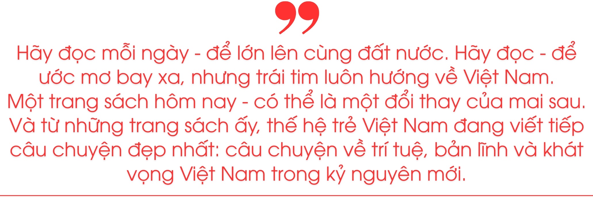 Hãy đọc mỗi ngày – để lớn lên cùng đất nước. Hãy đọc – để ước mơ bay xa, nhưng trái tim luôn hướng về Việt Nam.