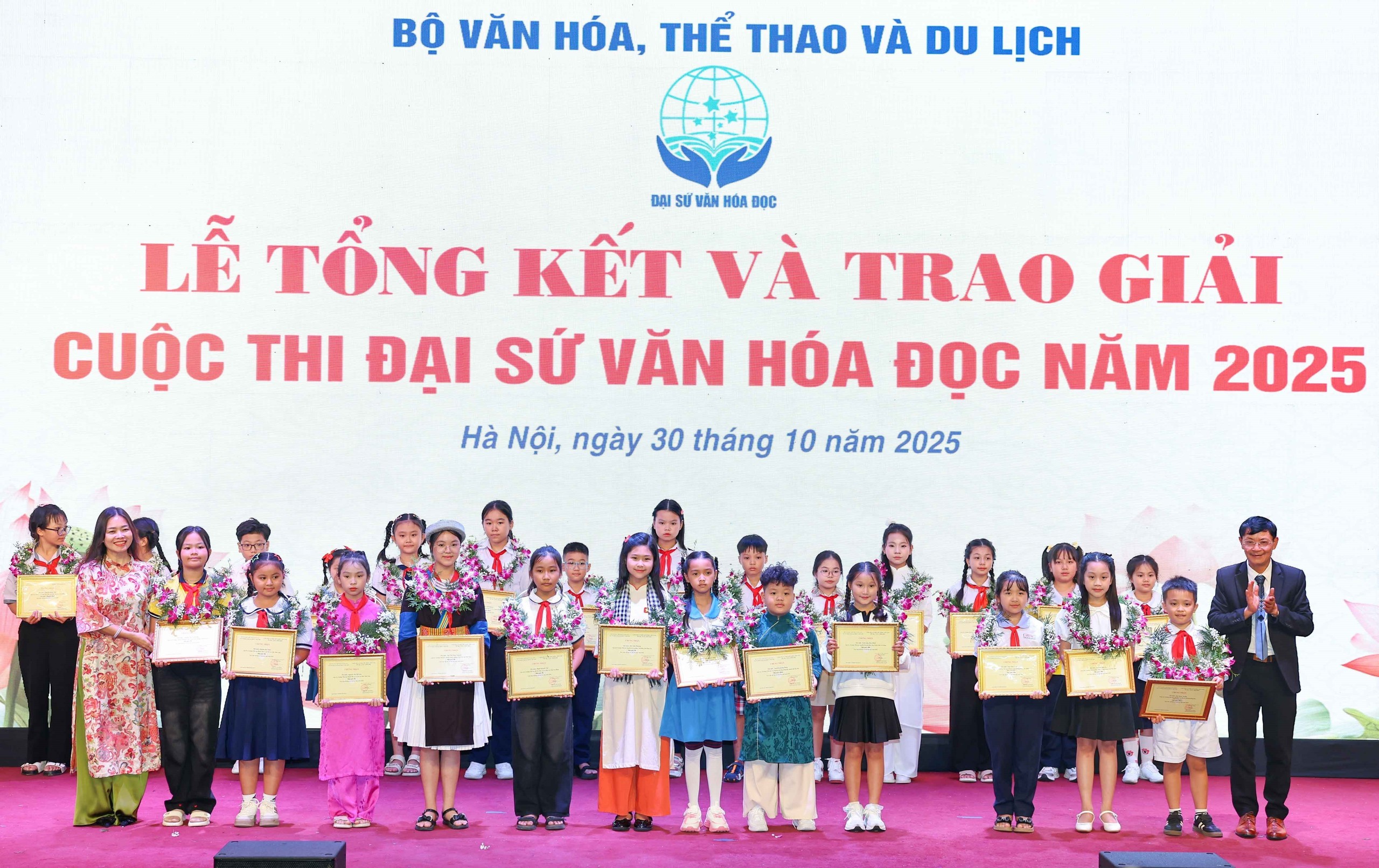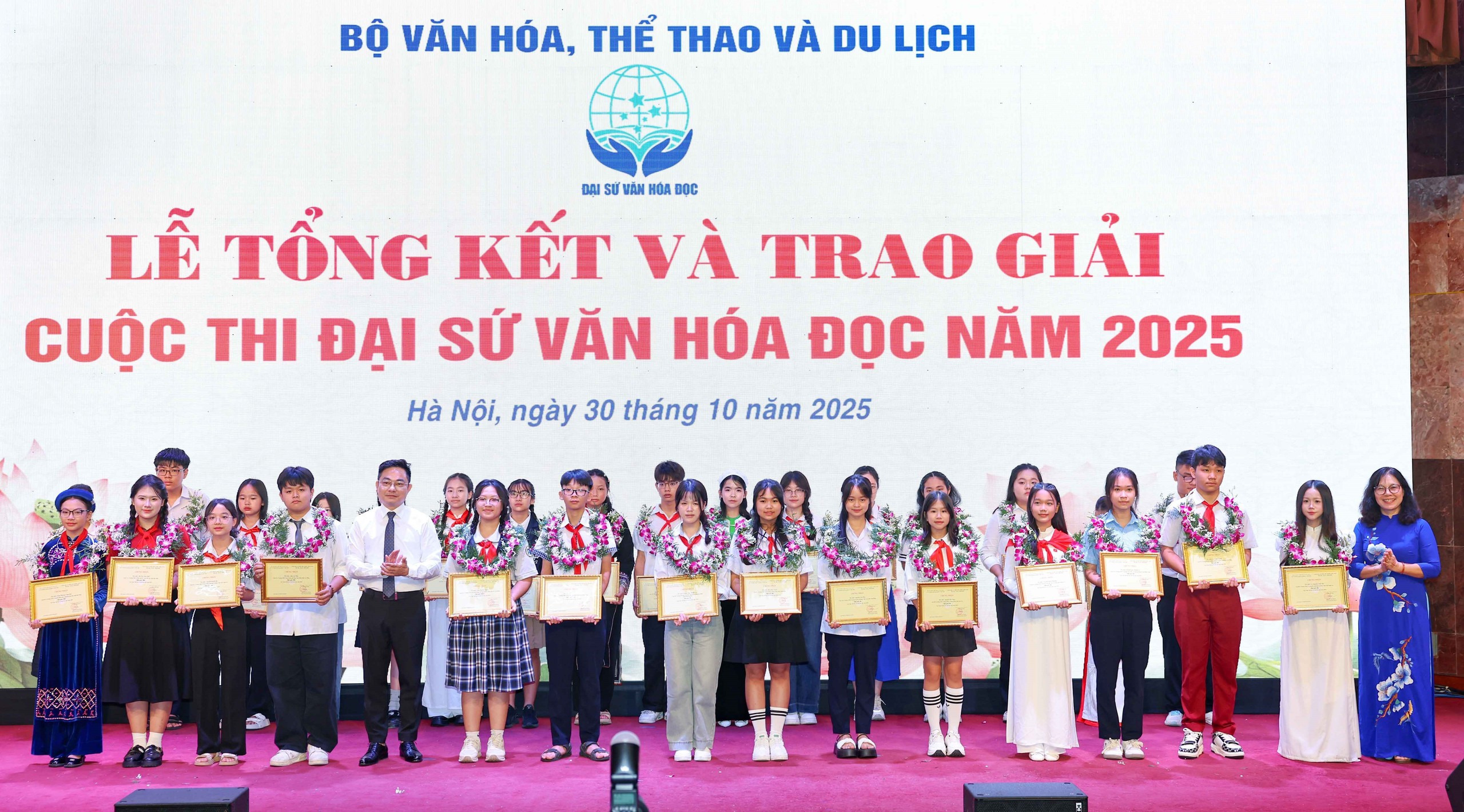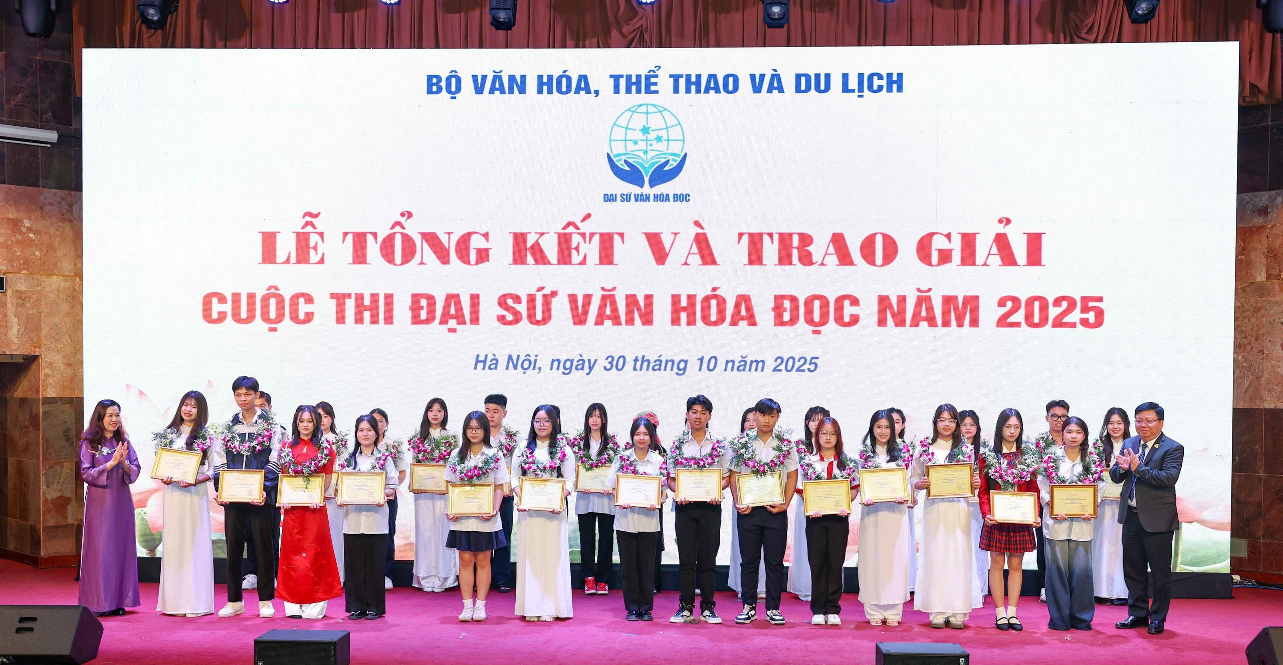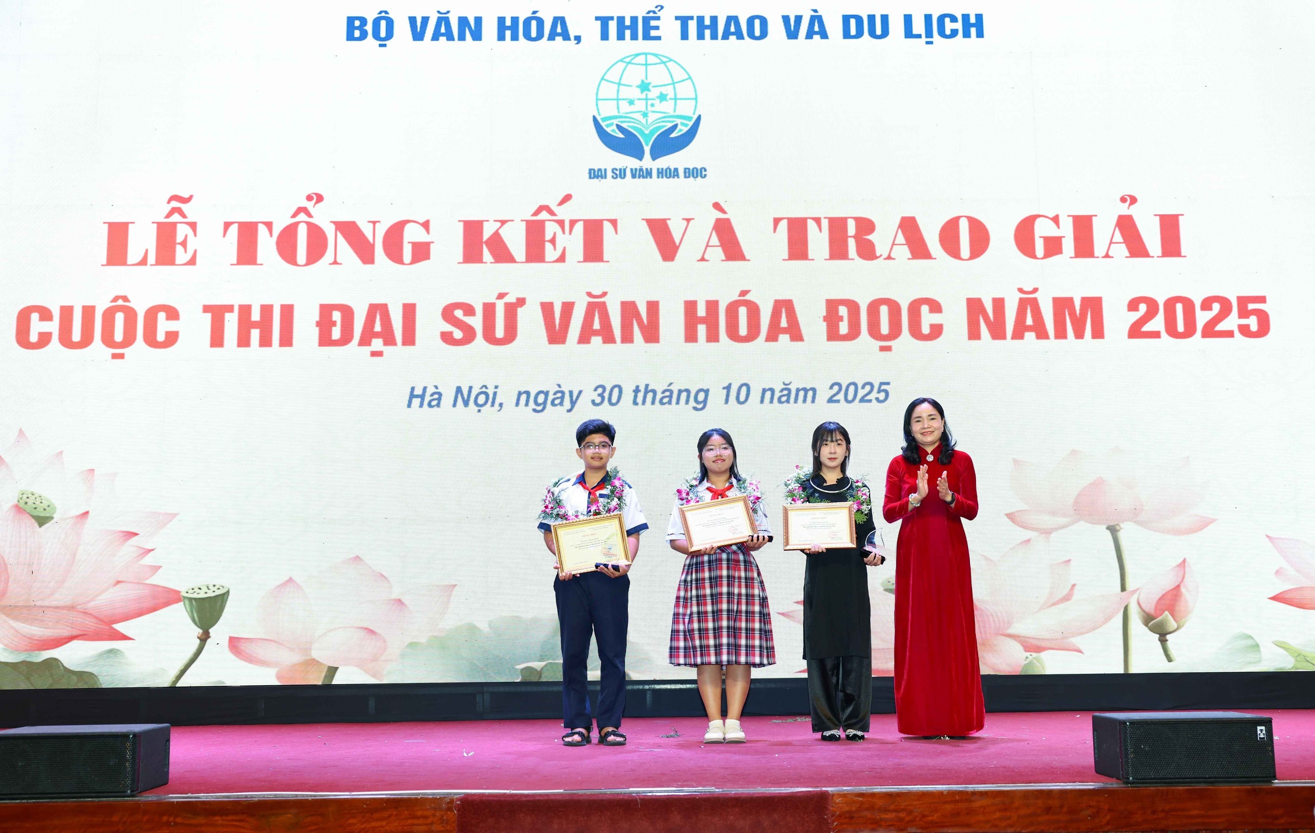 Sáng 30/10 tại Hà Nội, những gương mặt trẻ được vinh danh tại Lễ tổng kết Cuộc thi Đại sứ Văn hóa đọc 2025 đã nhắc chúng ta rằng: đằng sau mỗi trang sách là một hành trình trưởng thành, đằng sau mỗi câu chữ là một cánh cửa mở ra tương lai.