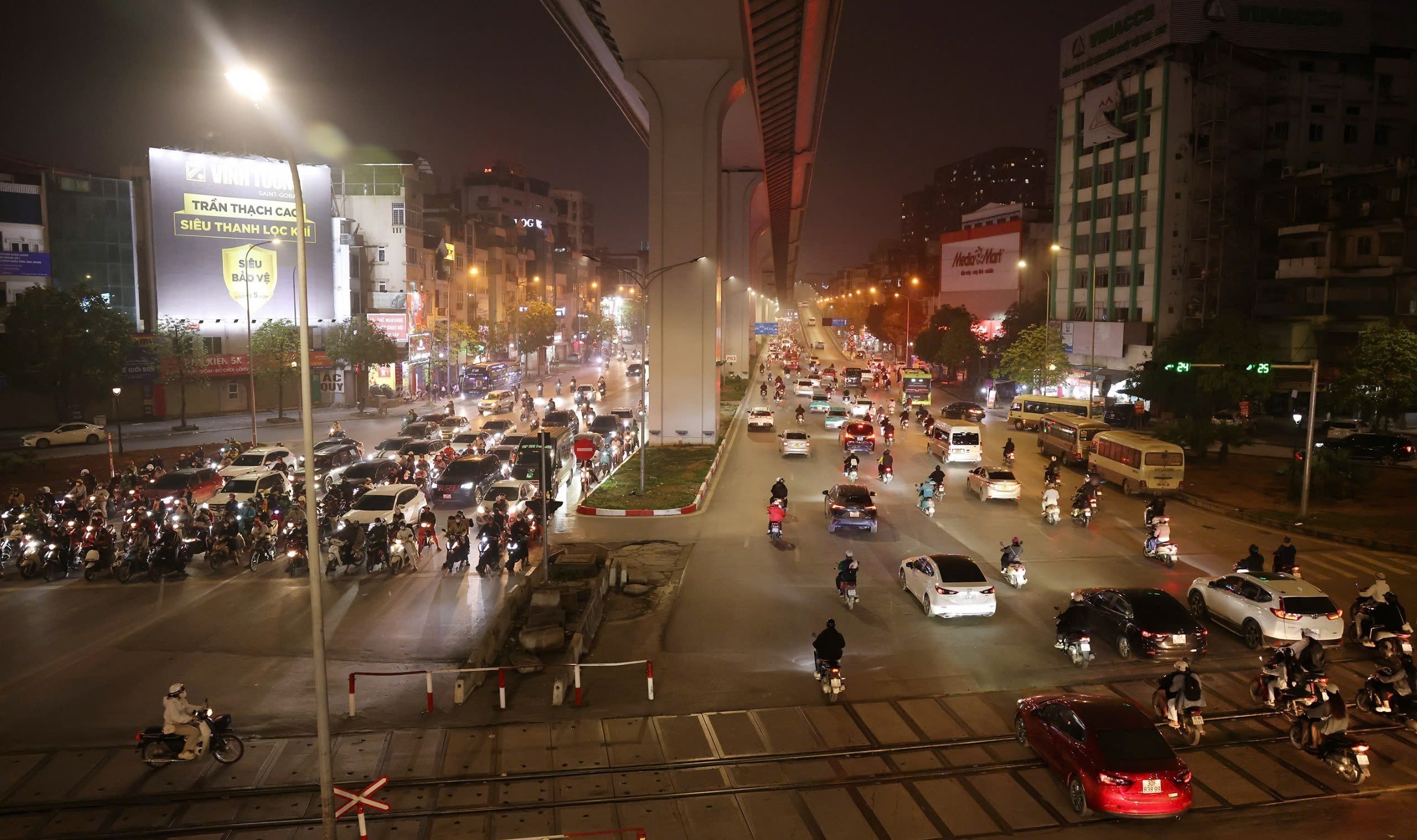 Ngã tư Giải Phóng - Pháp Vân thông thoáng (ảnh chụp lúc 20 giờ 30 phút). Ảnh: Tuấn Anh - TTXVN
