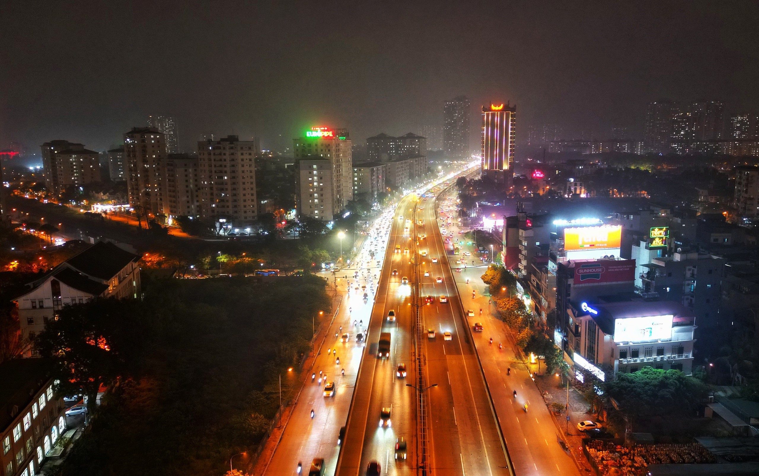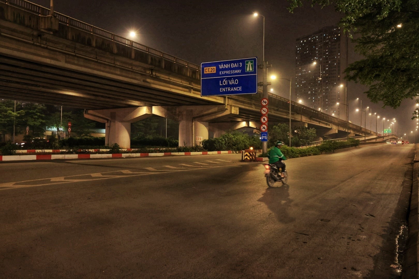 Đường vành đai 3 trên cao và phía dưới đoạn hướng cầu Thanh Trì thông thoáng cả 2 chiều (ảnh chụp lúc 20 giờ 15 phút). Ảnh: Tuấn Anh - TTXVN