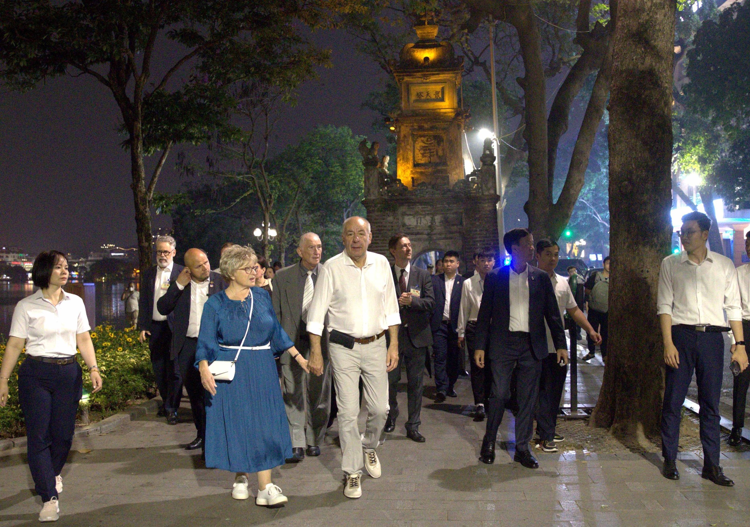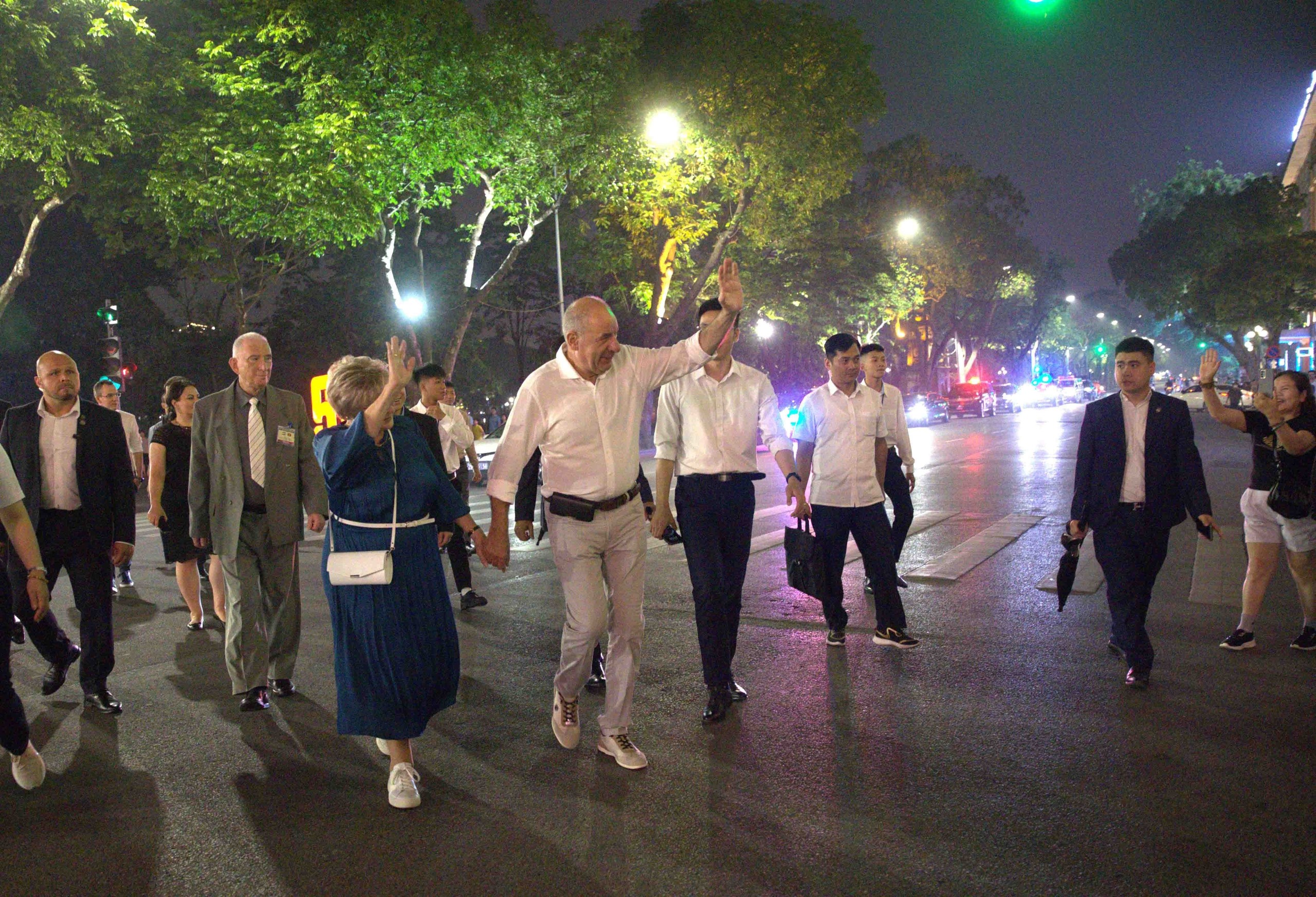 Tối 27/5/2025, khi vừa đến Hà Nội, Tổng thống Hungary Sulyok Tamás và Phu nhân đi dạo, ngắm cảnh một số tuyến phố quanh khu vực hồ Hoàn Kiếm.