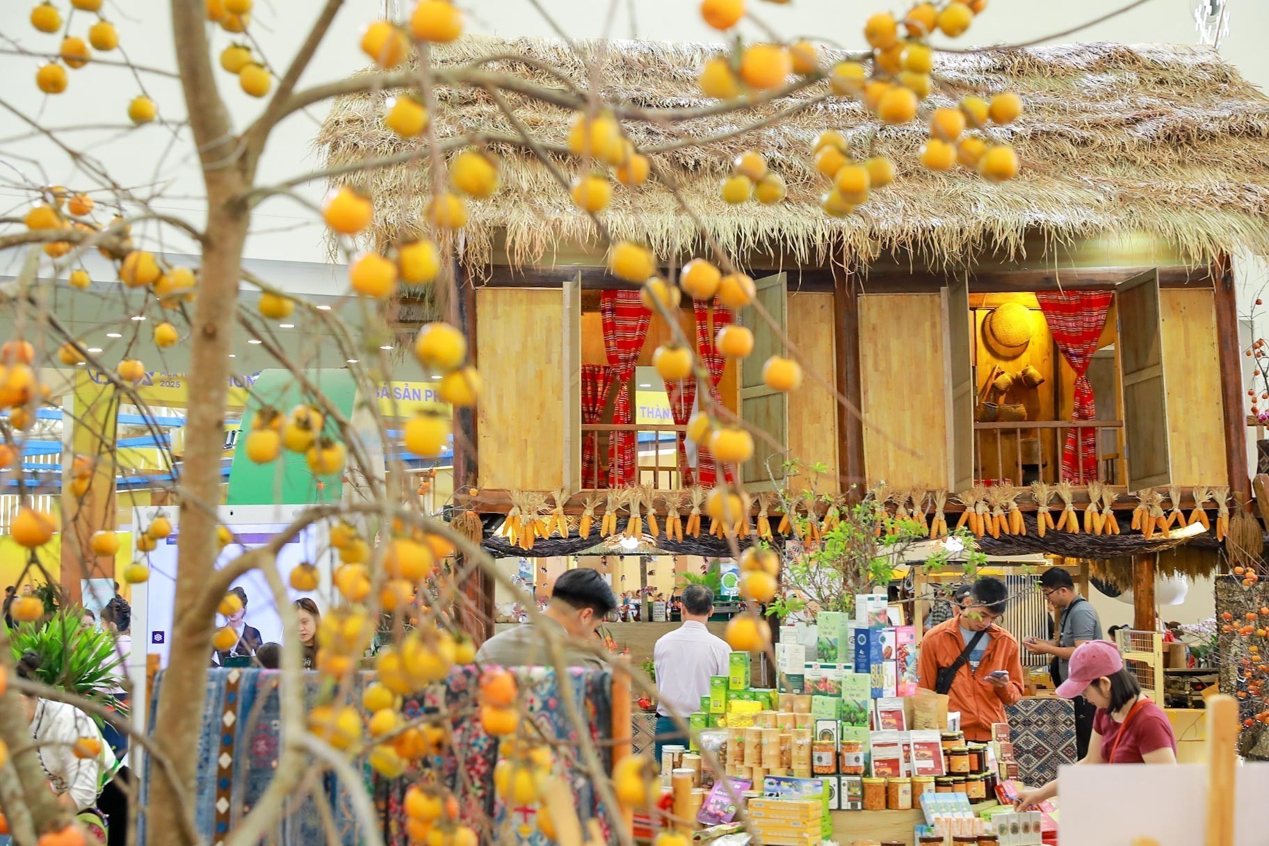 Gian hàng trưng bày, quảng bá sản phẩm đặc trưng, tiêu biểu của tỉnh Sơn La thu hút người dân và du khách tới tham quan và mua sắm. Ảnh: Khánh Hoà