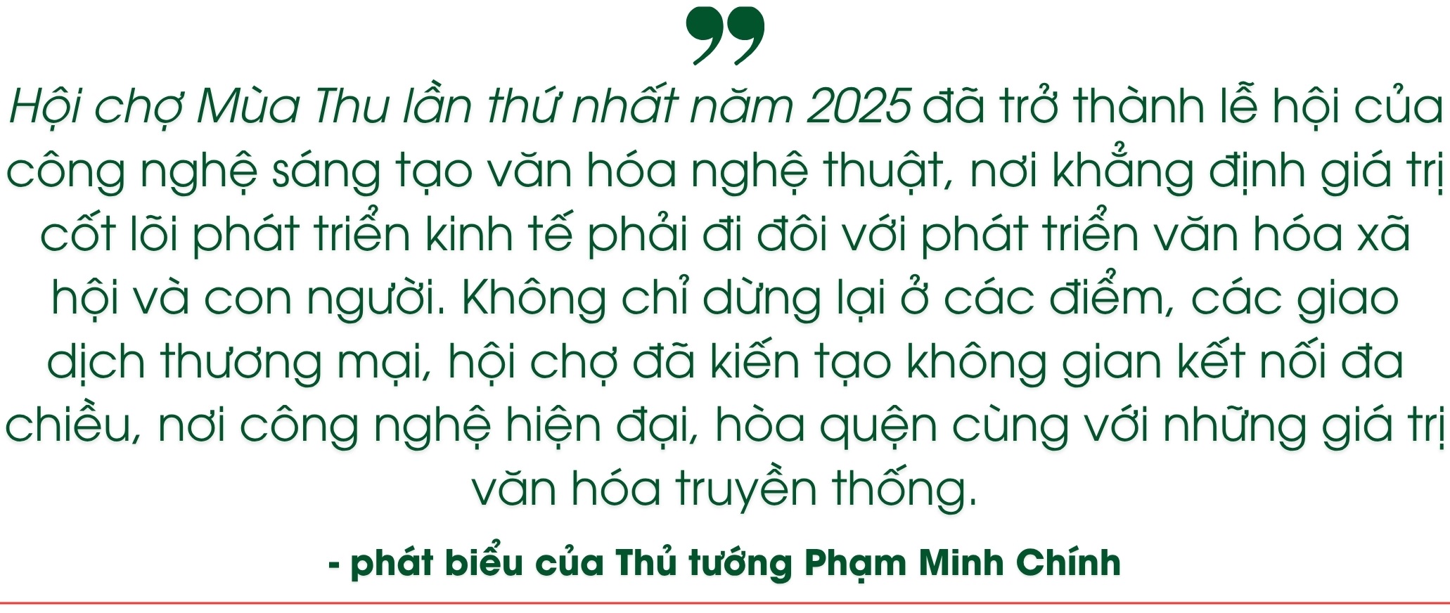 Phát biểu ấy của người đứng đầu Chính phủ không chỉ tổng kết một sự kiện xúc tiến thương mại - đầu tư, mà gợi mở một cách nhìn mới: khi kinh tế bắt tay văn hóa, thị trường thôi không còn là nơi trao đổi đơn thuần, mà trở thành không gian kết nối, nơi giá trị nhân văn và bản sắc dân tộc được chuyển hóa thành sức mạnh cạnh tranh. Trong kỷ nguyên số, câu hỏi không còn là "bán gì" mà là "kể câu chuyện gì" để tạo dựng niềm tin, cảm hứng và cộng đồng. Và ở Hội chợ Mùa Thu lần thứ nhất năm 2025, câu chuyện ấy được kể một cách sống động.