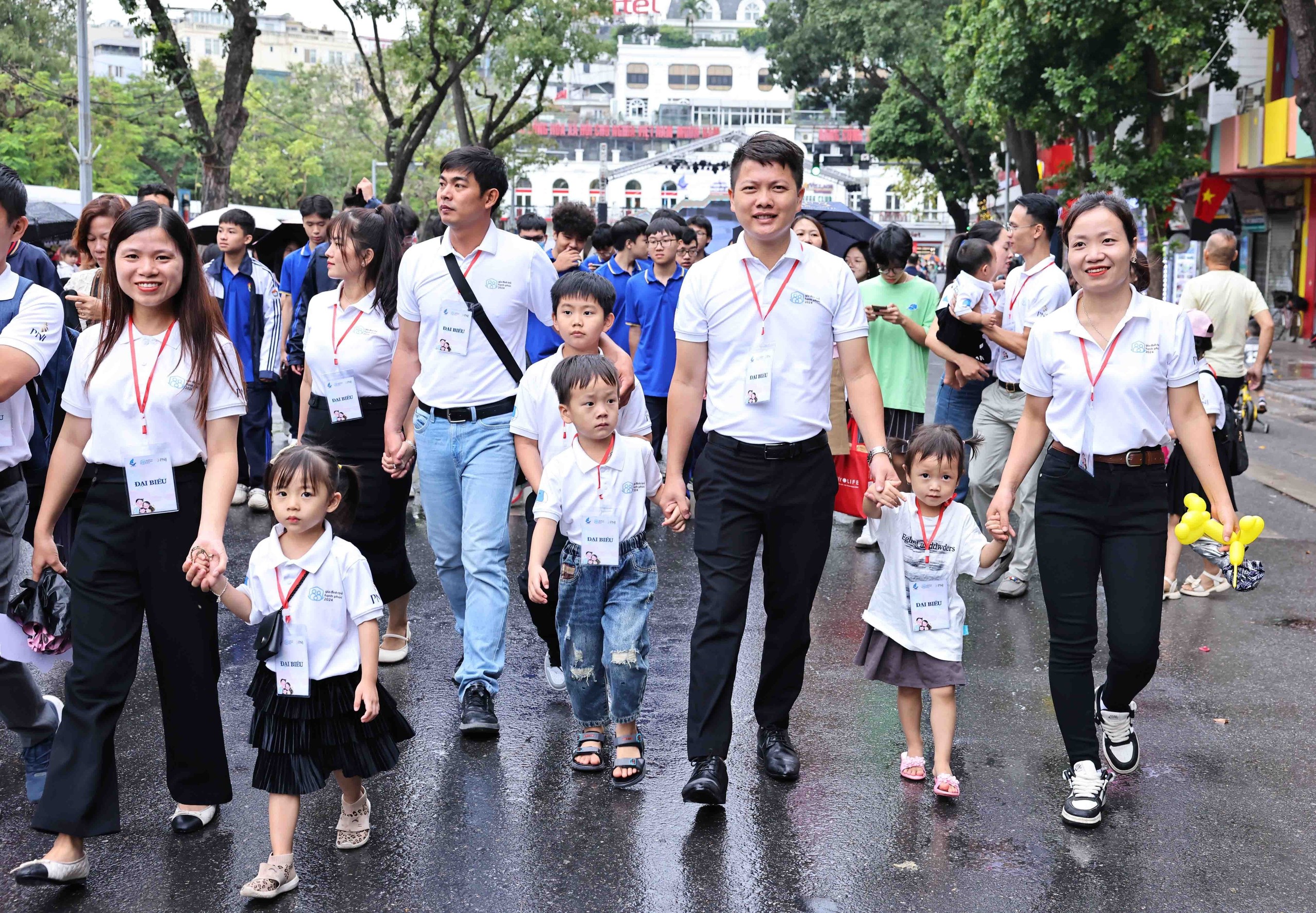 Các gia đình trẻ tham gia hoạt động đi bộ tại "Ngày hội Gia đình trẻ hạnh phúc" năm 2024 ở Hà Nội
