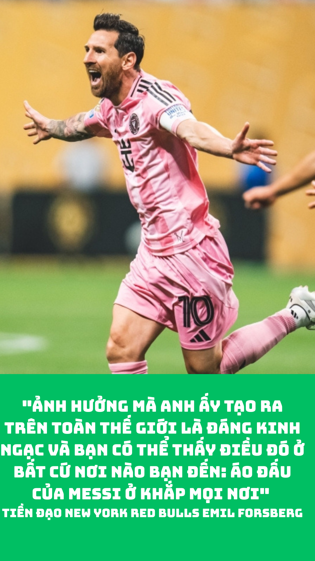 Trong khi Luis Suarez khoe con số 38 tuổi rưỡi được xăm trên chân để nhấn mạnh đến tuổi tác của mình, Messi đón tuổi 38 với sự rạng rỡ của riêng mình ở nơi mà tiếng vọng của trái bóng rổ nảy lên và tiếng leng keng của gậy đánh bóng chày đập vào thùng chứa vang vọng khắp xung quanh sân đấu. Nhưng chắc chắn phải đến bây giờ những người Mỹ thích vui vẻ và tiệc tùng mới cảm nhận được niềm vui mà cầu thủ vĩ đại nhất lịch sử mang lại thật sự khác biệt như thế nào.