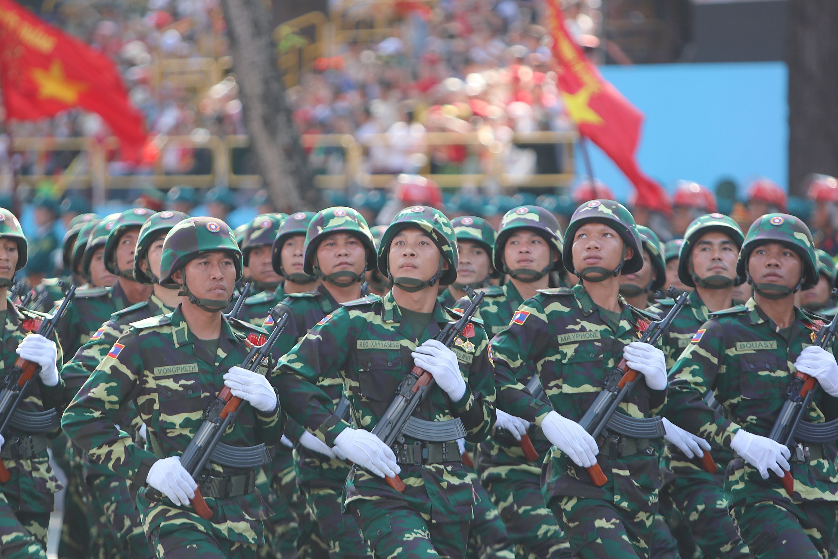 Lực lượng Quân đội nhân dân Lào tham gia Tổng duyệt kỷ niệm 50 năm Ngày Giải phóng miền Nam, thống nhất đất nước. Ảnh: Thanh Vũ-TTXVN