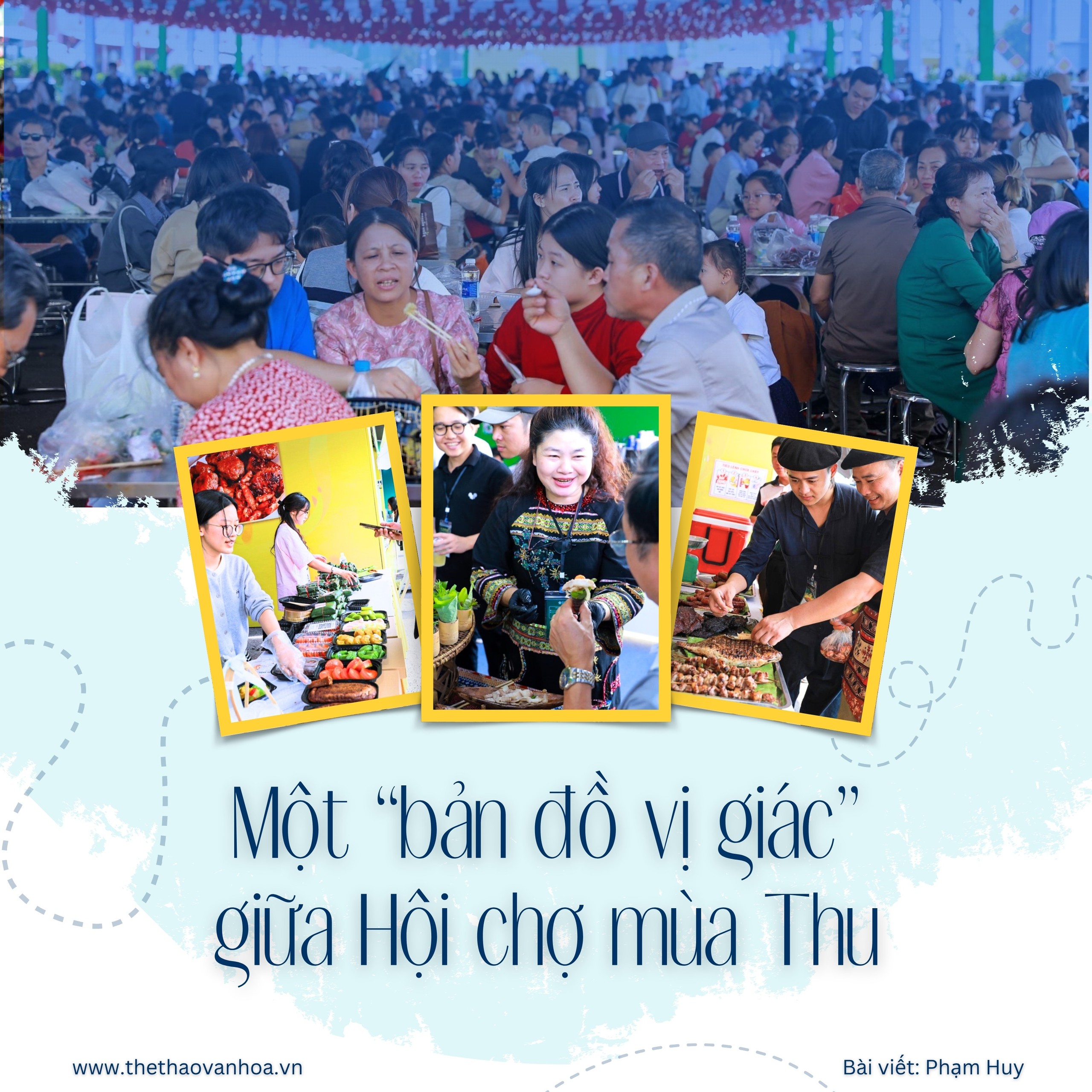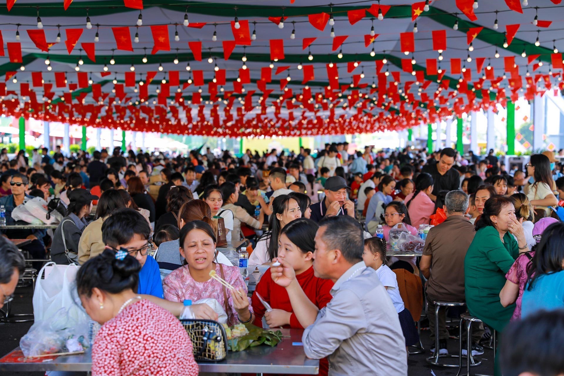 Không gian hội chợ đông kín người ăn, người xem, người trò chuyện dưới mái rợp cờ phướn, khiến bữa ăn trở lại là một hành vi xã hội đúng nghĩa. Người lạ ngồi cạnh nhau, trao nhau chén nước chấm, hỏi nhau cách cuốn gỏi, chia sẻ mẹo nướng cá. Ranh giới vùng miền, lứa tuổi, tầng lớp dường như mềm lại. Chợ - lễ hội - du lịch hòa làm một nhịp: vừa náo nức mua bán, vừa linh hoạt giao lưu, vừa thong thả thưởng thức. Cái tinh thần "quây quần quanh mâm" của người Việt được tái hiện giữa lòng đô thị nhanh - gọn - vội, như một lời nhắc dịu dàng về nhịp sống chậm.