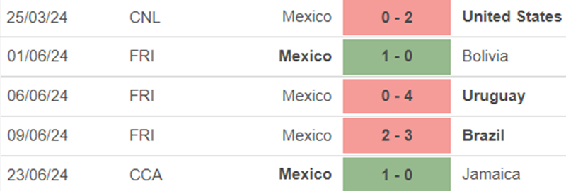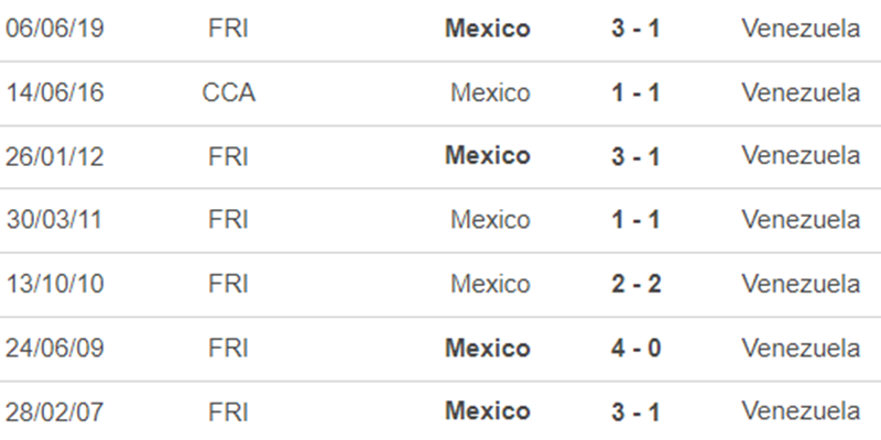Venezuela chỉ thắng đúng 1 trận trong 6 trận gần nhất. Không chỉ có phong độ bất ổn, thành tích đối đầu của họ với Mexico cũng rất tệ.