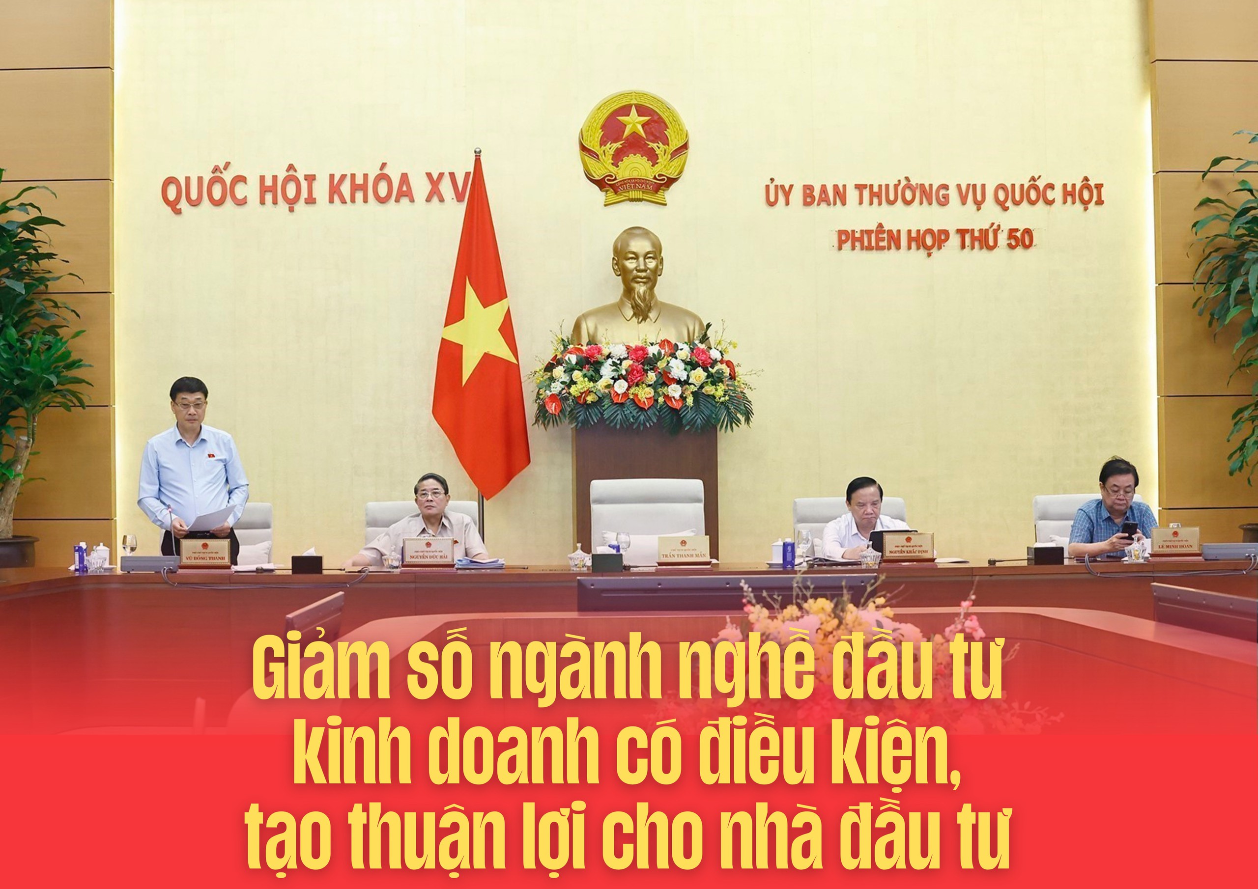 Thảo luận về dự án Luật Đầu tư (sửa đổi), các thành viên trong Ủy ban Thường vụ Quốc hội nhấn mạnh dự án luật này có phạm vi rất rộng, tác động đến môi trường đầu tư kinh doanh và tiến trình cải cách của nền kinh tế. Các thành viên Ủy ban Thường vụ Quốc hội đã cho ý kiến về khái niệm, phạm vi và thẩm quyền chấp thuận chủ trương đầu tư; tiêu chí xác định ngành nghề đầu tư kinh doanh có điều kiện, việc thể chế hóa Nghị quyết 50 của Bộ Chính trị về nâng cao chất lượng FDI, đặc biệt là cơ chế hậu kiểm khi cho phép nhà đầu tư nước ngoài thành lập tổ chức kinh tế trước khi có dự án đầu tư; các biện pháp kiểm soát để tránh lợi dụng chuyển tài sản hoặc trốn thuế...