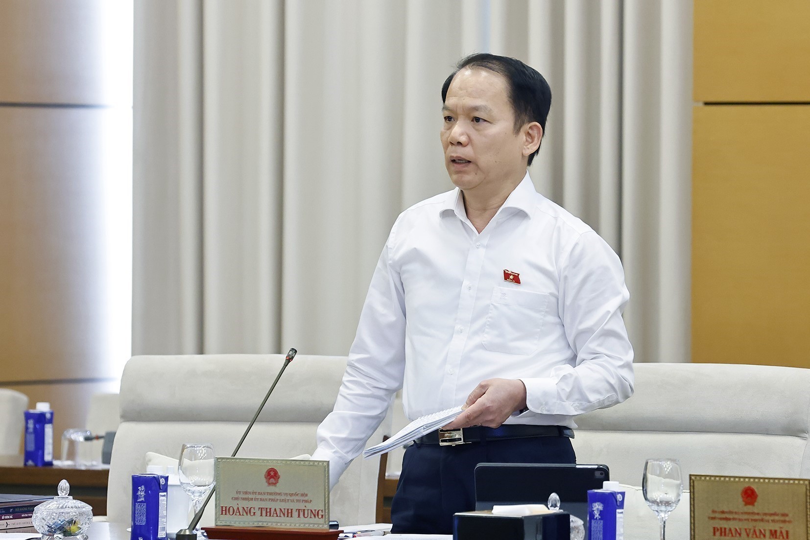 Chủ nhiệm Ủy ban Pháp luật và Tư pháp của Quốc hội Hoàng Thanh Tùng phát biểu. Ảnh: Doãn Tấn - TTXVN