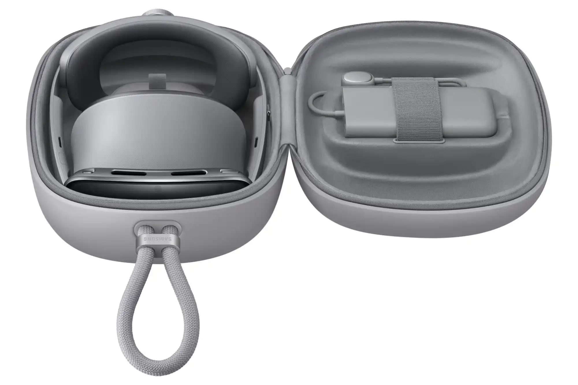 Về thiết kế, Samsung Galaxy XR được thiết kế để phân bổ áp lực đều lên trán với lớp đệm và phía sau đầu với lớp đệm bổ sung, kèm theo núm điều chỉnh độ vừa vặn ở phía sau. Với cấu trúc chủ yếu bằng nhựa, thiết bị nặng 545 gram, chưa tính tấm che sáng tùy chọn giúp tăng trải nghiệm nhập vai. Pin ngoài có trọng lượng 302 gram, được kết nối ở phía bên trái. So sánh, Apple Vision Pro nặng 750-800 gram với pin 353 gram, trong khi Meta Quest 3 nhẹ hơn một chút ở mức 515 gram.