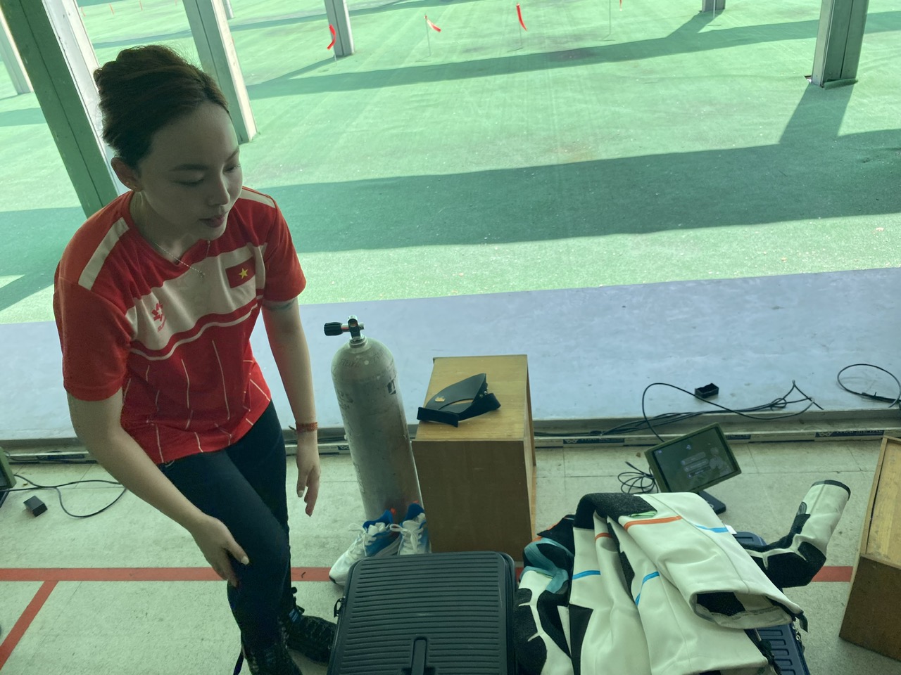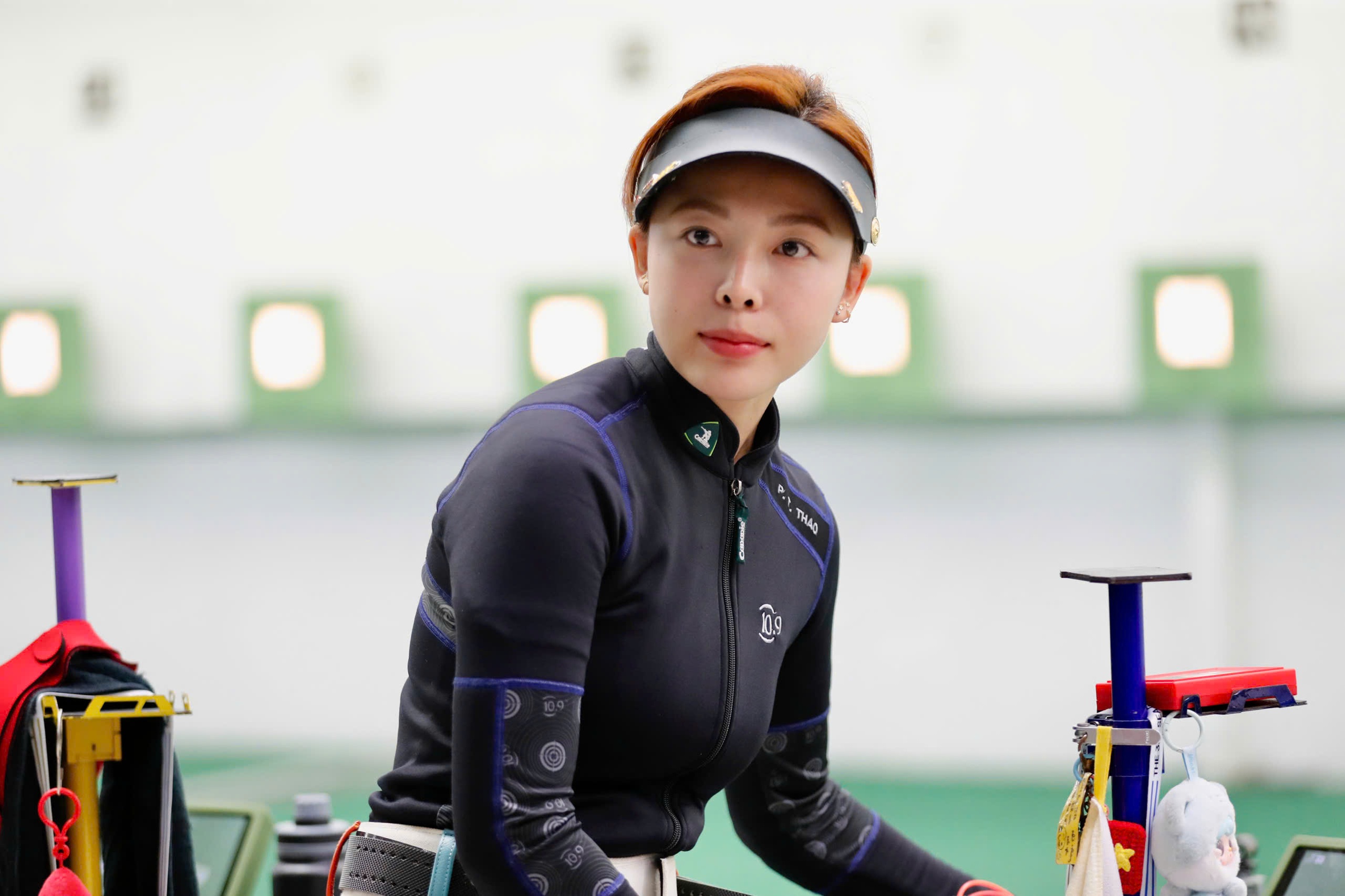 Trang phục thi đấu giúp Phí Thanh Thảo ổn định cơ thể và giảm rung động, tăng độ chính xác - Ảnh: Trần Dũng
