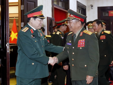 Đại tướng Ngô Xuân Lịch, Bộ trưởng Bộ Quốc phòng với Thượng tướng Sengnouane Xayalath, Bộ trưởng Bộ Quốc phòng Lào. Ảnh: An Đăng – TTXVN