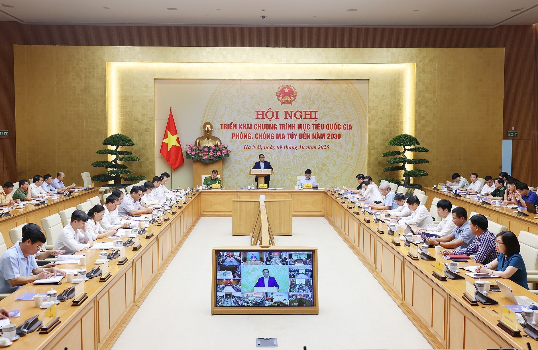 Sáng 9/10, Thủ tướng Chính phủ Phạm Minh Chính chủ trì hội nghị trực tuyến toàn quốc triển khai Chương trình mục tiêu quốc gia phòng, chống ma túy đến năm 2030. Hội nghị được tổ chức trực tiếp tại Trụ sở Chính phủ, trực tuyến tới điểm cầu 34 tỉnh, thành phố và 3.321 xã, phường, đặc khu. Dự hội nghị có Phó Thủ tướng Chính phủ Lê Thành Long; lãnh đạo các bộ, ngành Trung ương; lãnh đạo các tỉnh, thành phố.