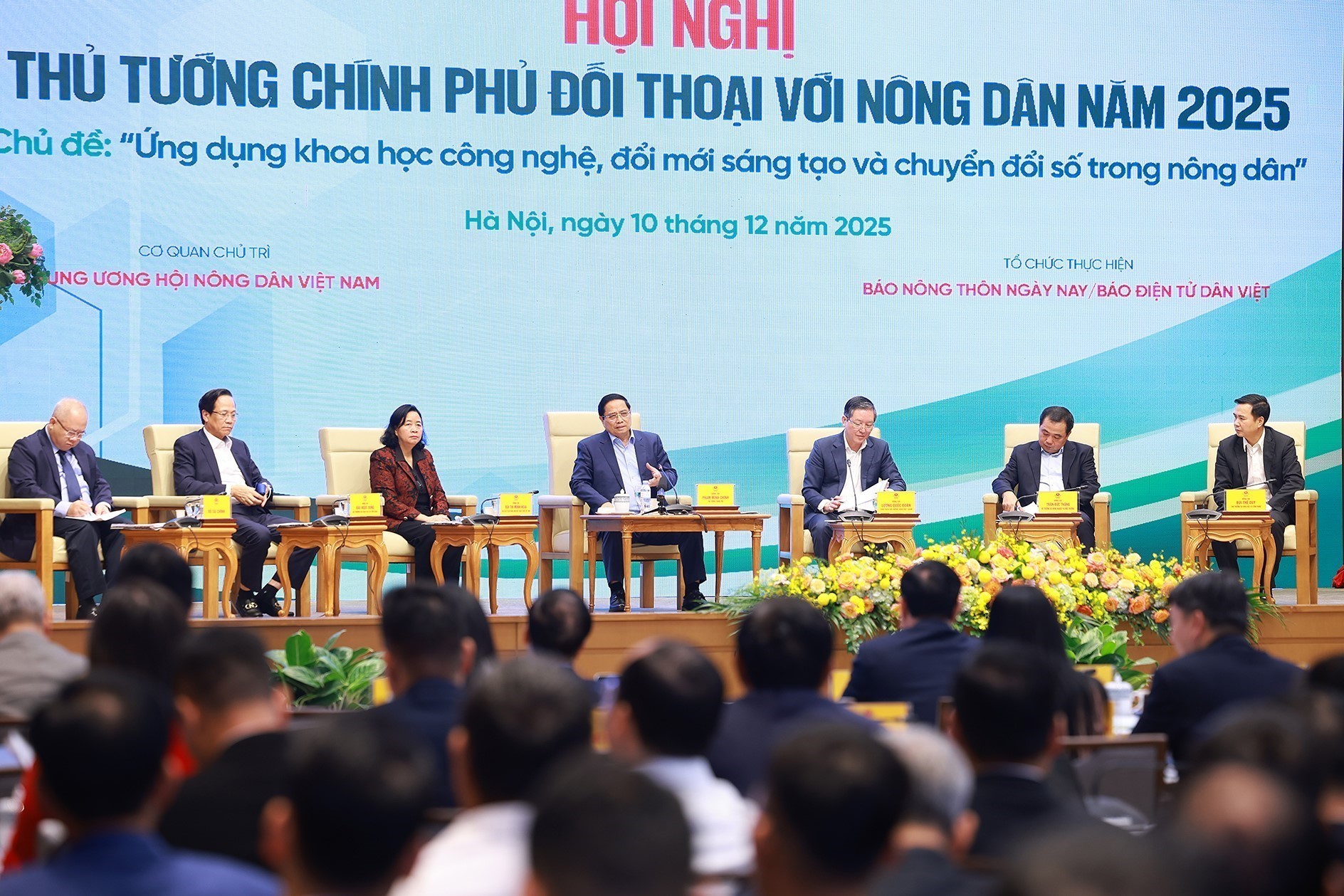 Sáng 10/12/2025, tại Hà Nội, Thủ tướng Phạm Minh Chính chủ trì Hội nghị Thủ tướng Chính phủ đối thoại với nông dân năm 2025 với chủ đề: "Ứng dụng khoa học công nghệ, đổi mới sáng tạo và chuyển đổi số trong nông dân".