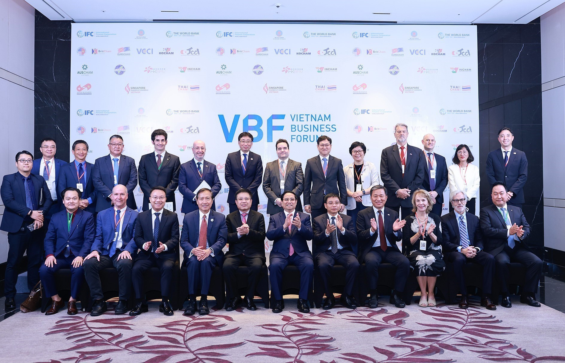 Thủ tướng Phạm Minh Chính với các đại biểu tham dự Diễn đàn doanh nghiệp Việt Nam thường niên. Ảnh: Dương Giang-TTXVN