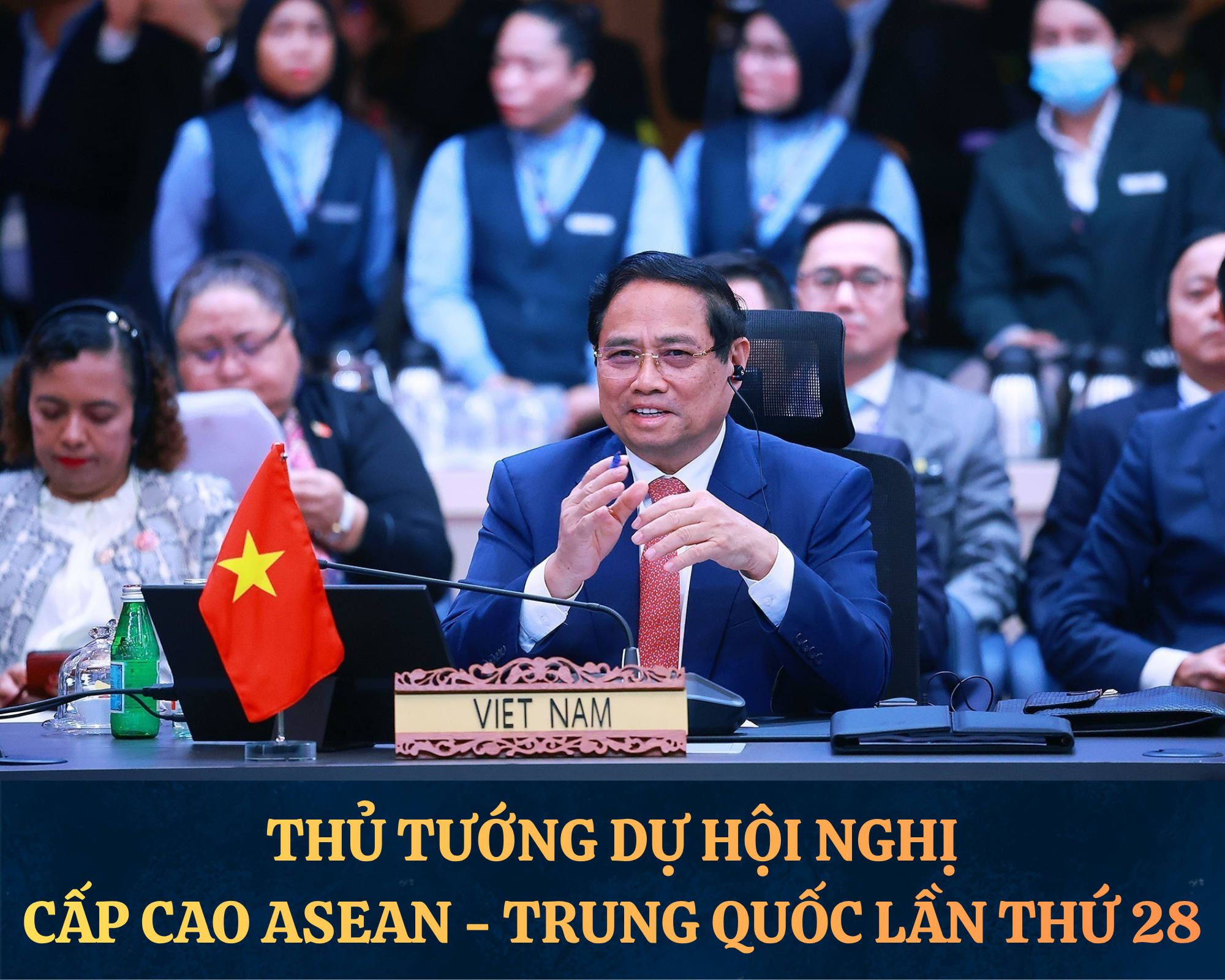 Thủ tướng Phạm Minh Chính tham dự và phát biểu tại Hội nghị Cấp cao ASEAN - Trung Quốc lần thứ 28. Ảnh: Dương Giang-TTXVN