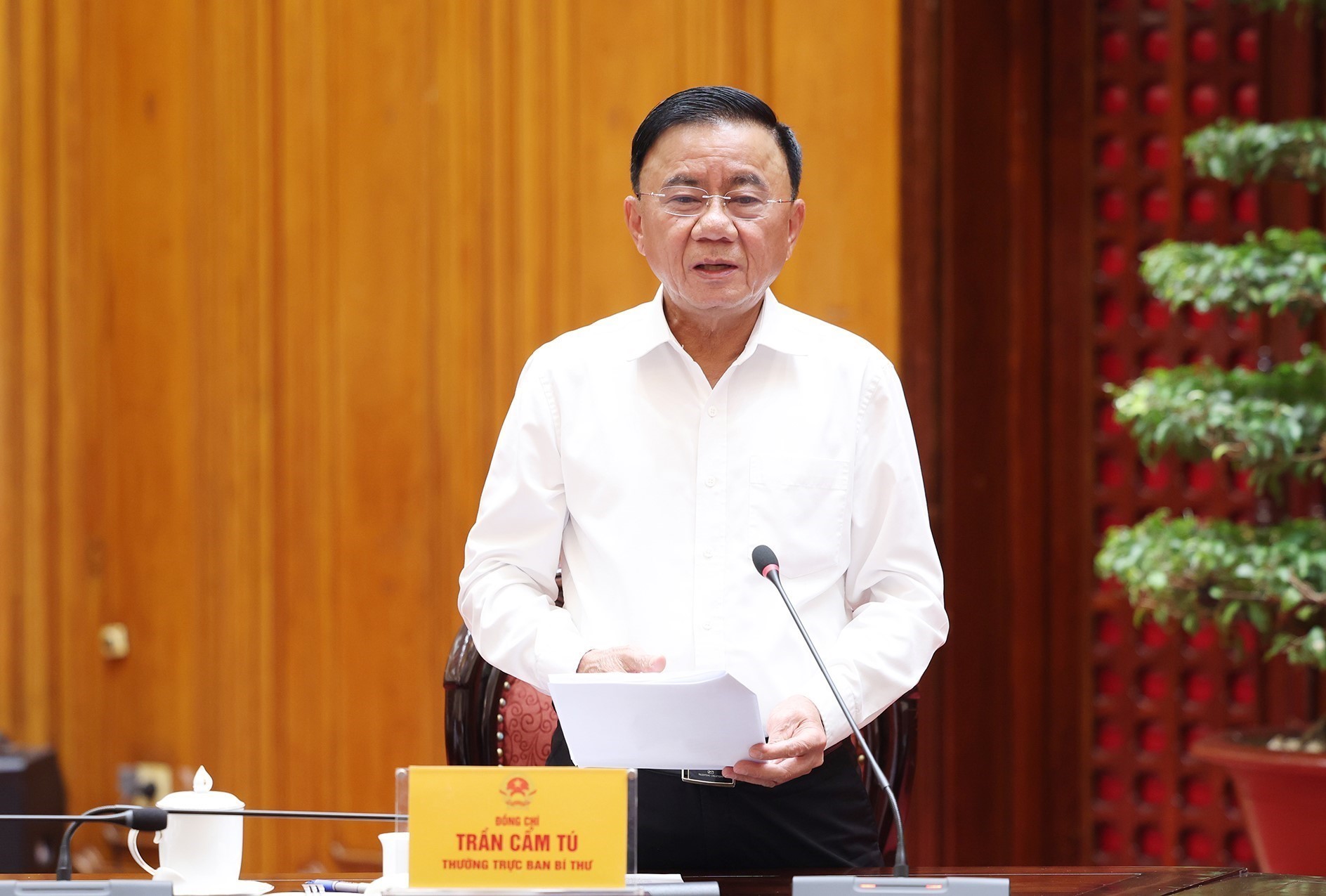 Đồng chí Trần Cẩm Tú, Ủy viên Bộ Chính trị, Thường trực Ban Bí thư phát biểu. Ảnh: Dương Giang-TTXVN