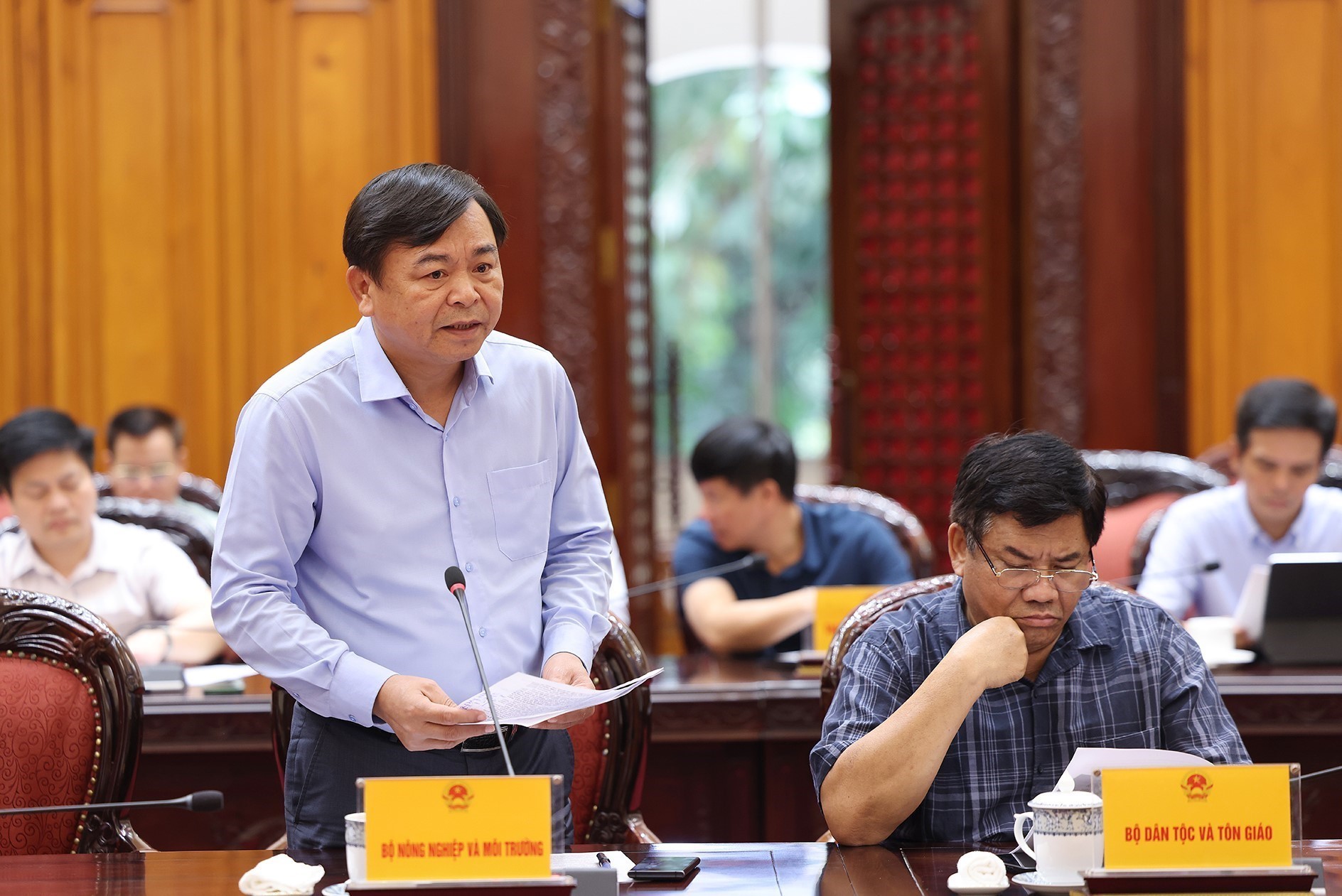Thứ trưởng Bộ Nông nghiệp và Môi trường Nguyễn Hoàng Hiệp báo cáo tình hình thiệt hại sau bão. Ảnh: Dương Giang-TTXVN