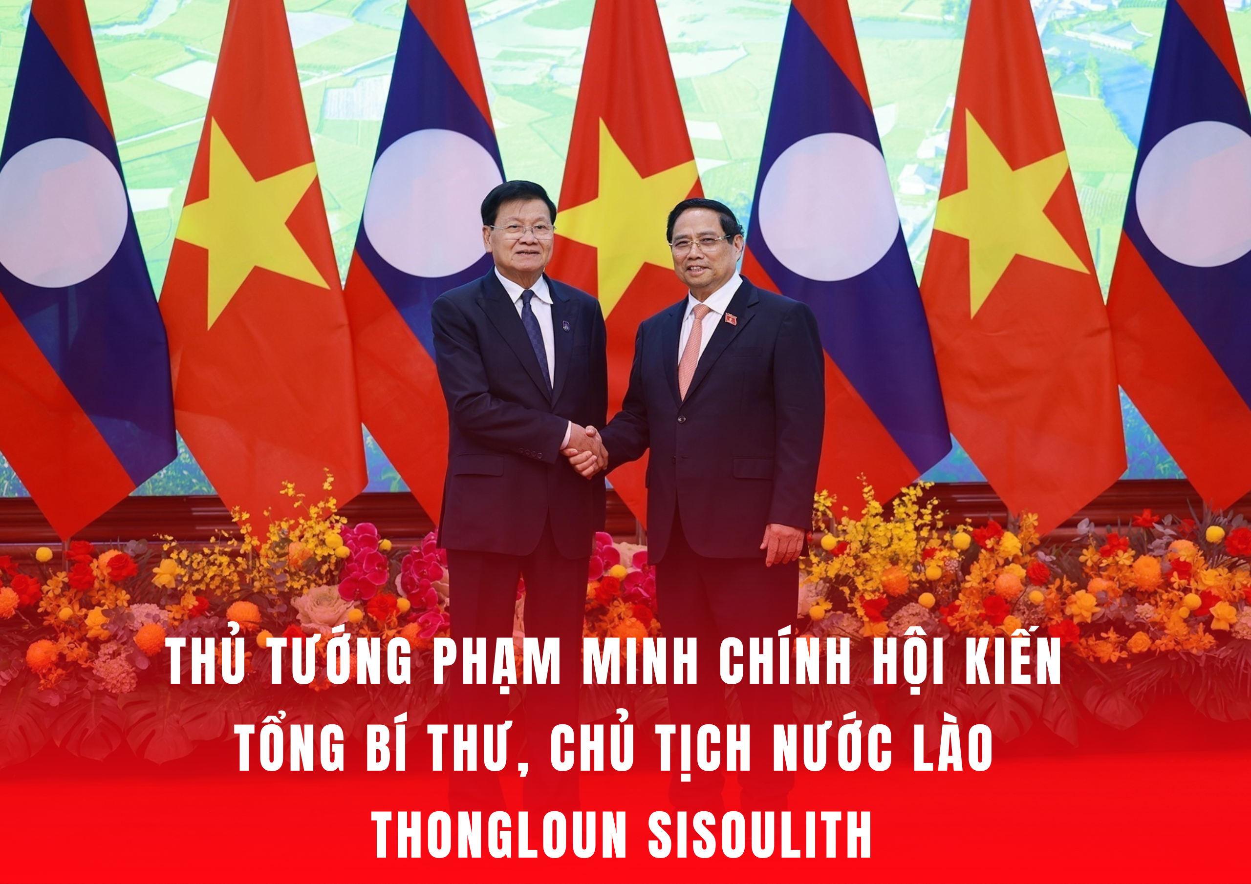 Trao đổi về hợp tác song phương, Thủ tướng Chính phủ Phạm Minh Chính bày tỏ vui mừng nhận thấy quan hệ hữu nghị vĩ đại, đoàn kết đặc biệt và hợp tác toàn diện Việt Nam - Lào tiếp tục phát triển tốt đẹp trong thời gian qua. Lãnh đạo cấp cao hai nước thường xuyên gặp gỡ, trao đổi tại các cuộc làm việc song phương cũng như tại các diễn đàn khu vực và quốc tế, cùng nhau trao đổi nhiều nội dung sâu rộng, toàn diện và thực chất về các vấn đề cốt lõi làm sâu sắc hơn quan hệ gắn bó giữa hai Đảng, hai nước.