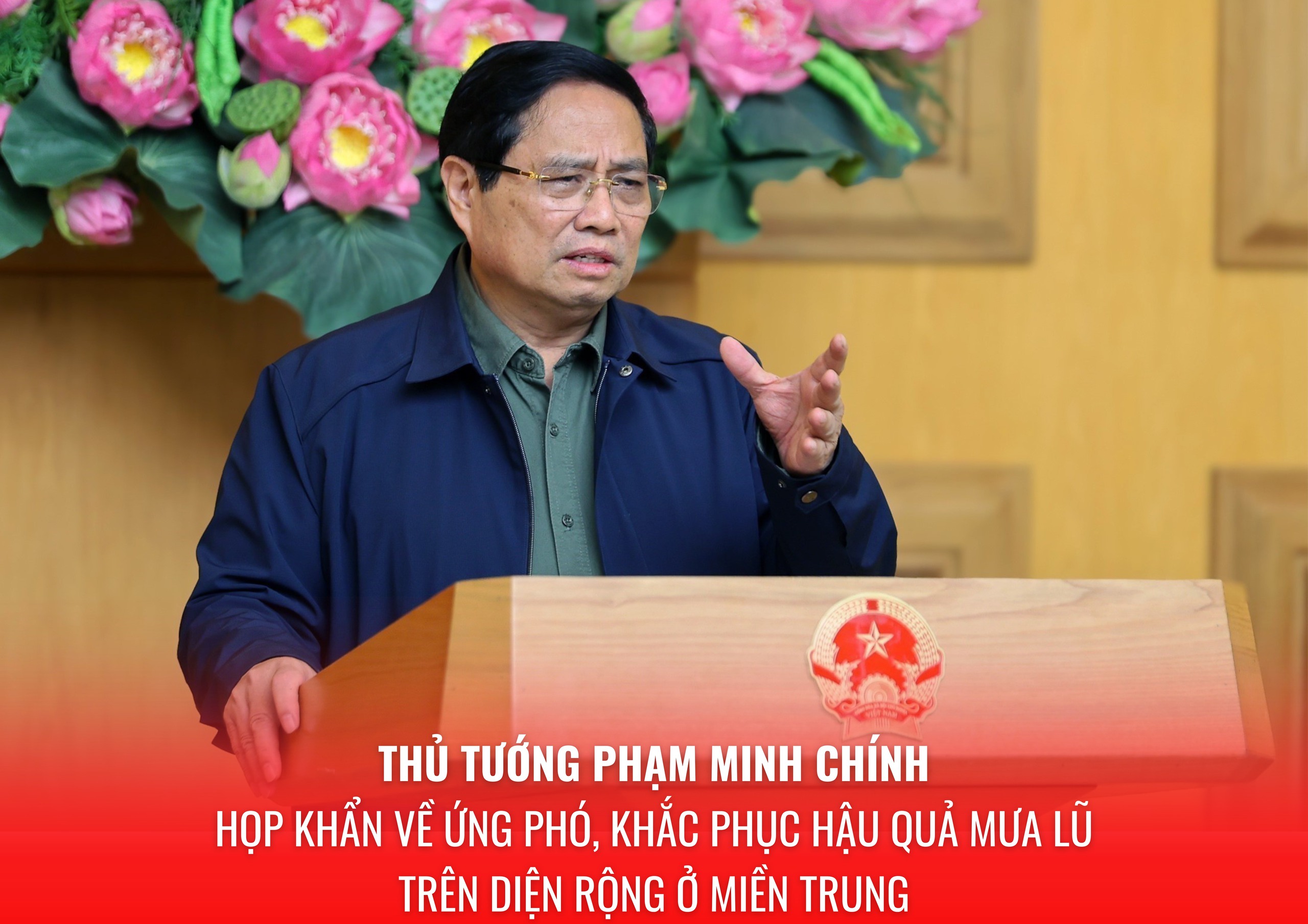 Sáng sớm 29/10, trước tình hình mưa lũ đặc biệt nghiêm trọng tại các tỉnh, thành phố miền Trung, Thủ tướng Chính phủ Phạm Minh Chính chủ trì họp khẩn với các bộ, ngành, địa phương để tổ chức ứng phó, khắc phục hậu quả, giảm thiệt hại đến mức thấp nhất có thể.