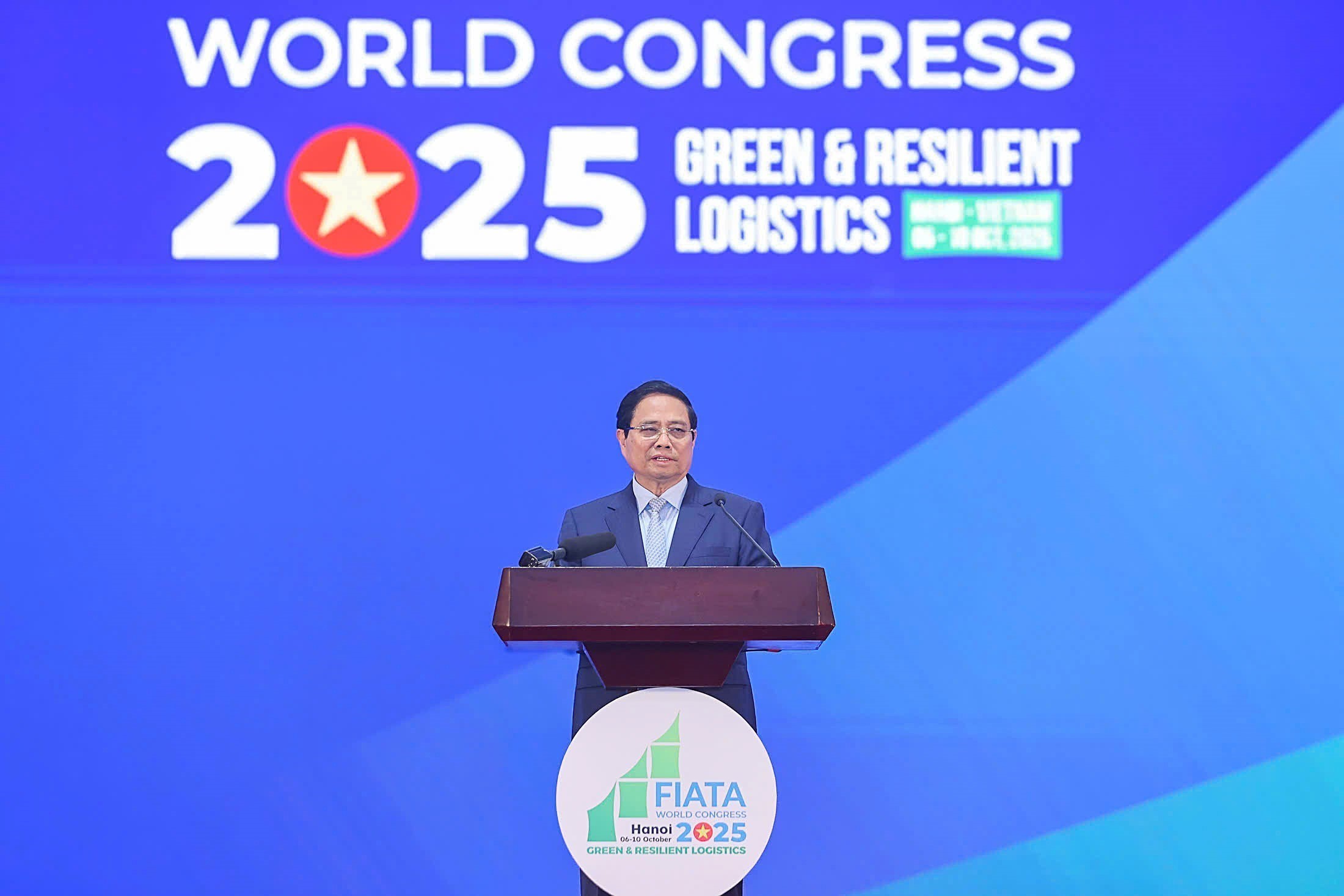 Chiều tối 8/10, tại Hà Nội, Thủ tướng Chính phủ Phạm Minh Chính đã dự Đại hội thế giới Liên đoàn các hiệp hội giao nhận vận tải quốc tế FIATA World Congress 2025 với chủ đề "Green and Resilient Logistics: Logistics xanh - thích ứng nhanh".