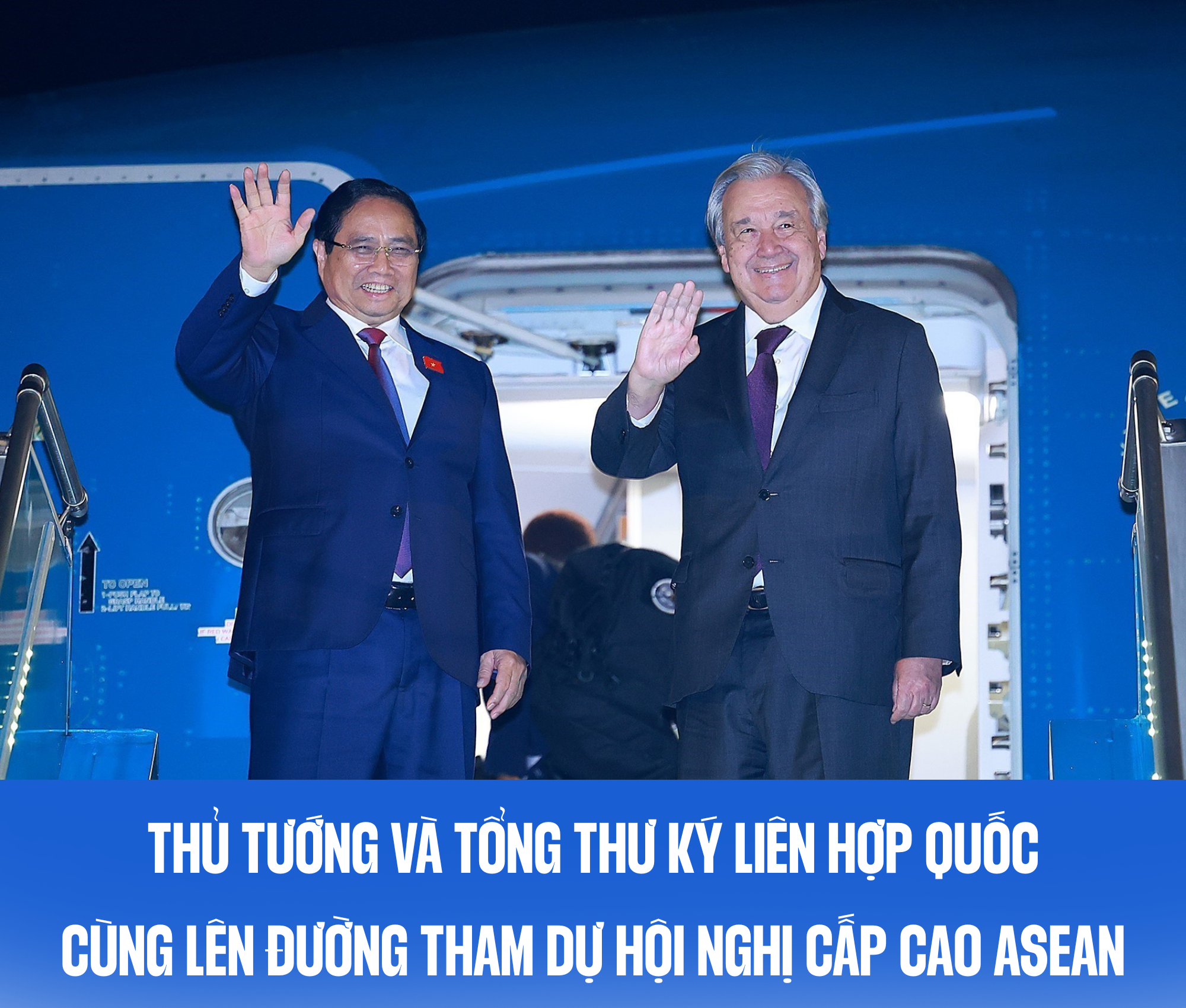 Thủ tướng Phạm Minh Chính mời Tổng Thư ký Liên hợp quốc António Guterres lên chuyên cơ, cùng rời Hà Nội sang Kuala Lumpur, Malaysia tham dự Hội nghị Cấp cao ASEAN lần thứ 47 và các Hội nghị Cấp cao liên quan
