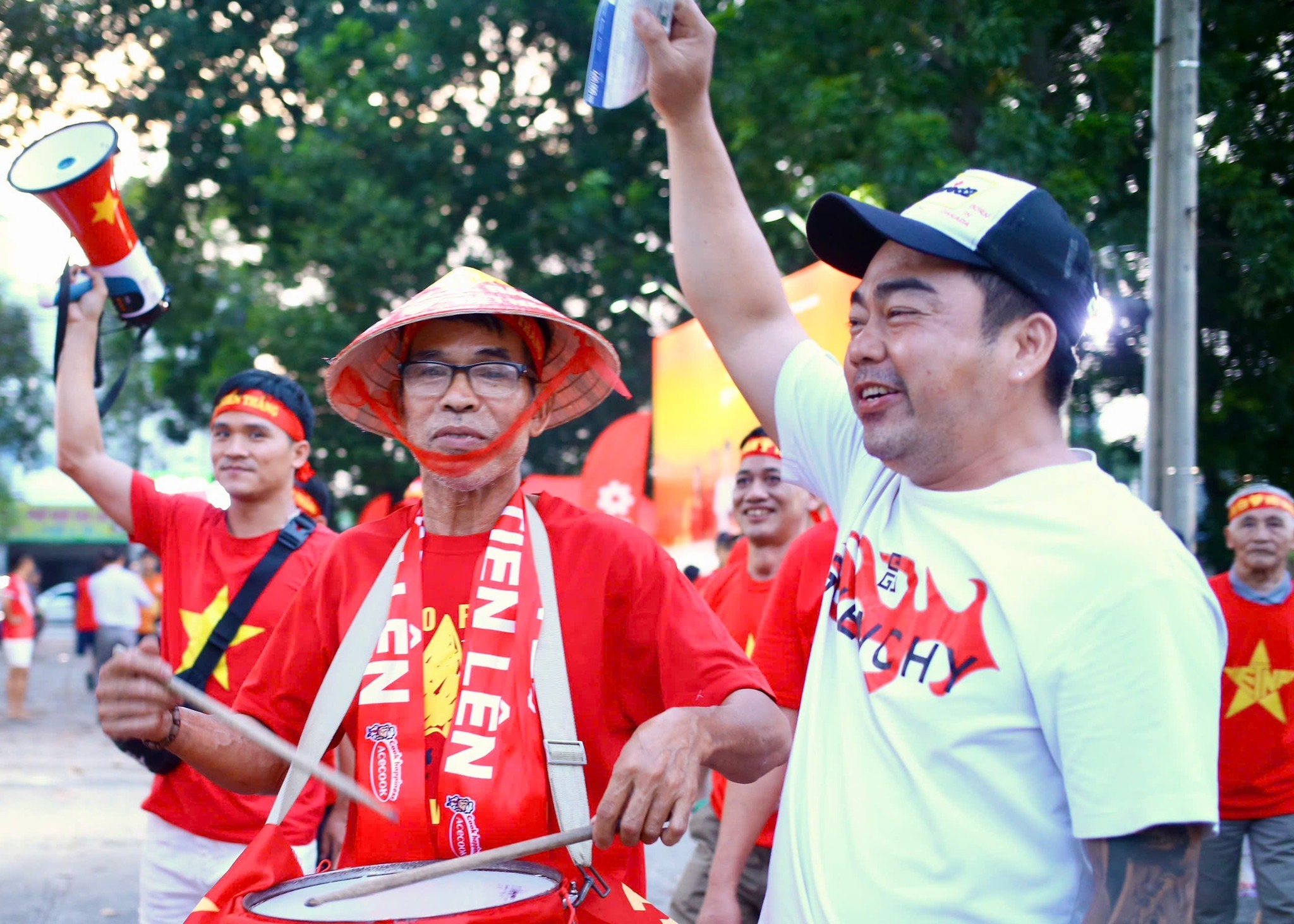 Các CĐV Việt Nam ra sân tiếp lửa cho thầy trò HLV Kim Sang Sik - Ảnh: VFF