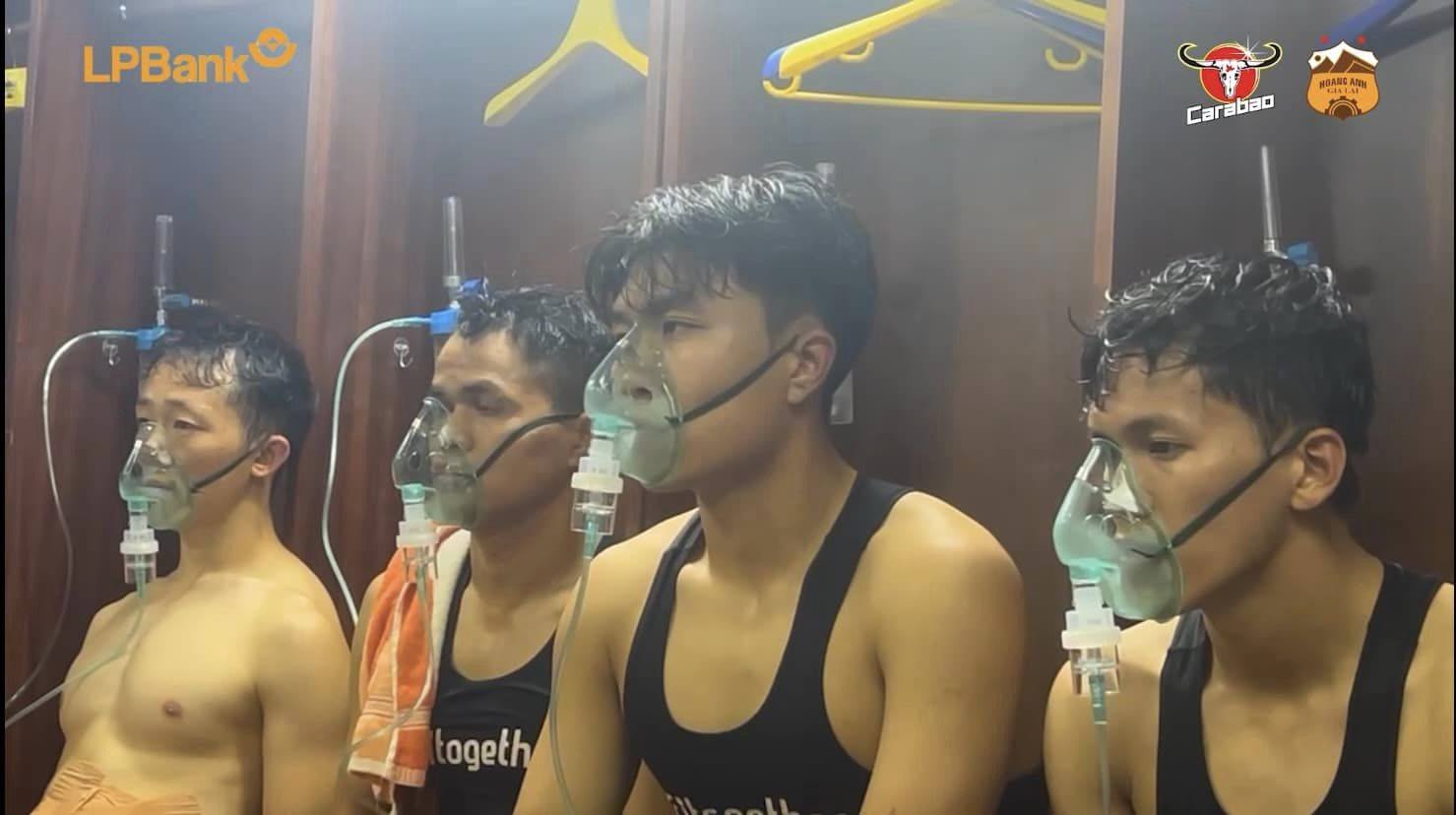 Cầu thủ HAGL tích cực nạp oxy trước và giữa trận đấu. Ảnh: HAGL FC