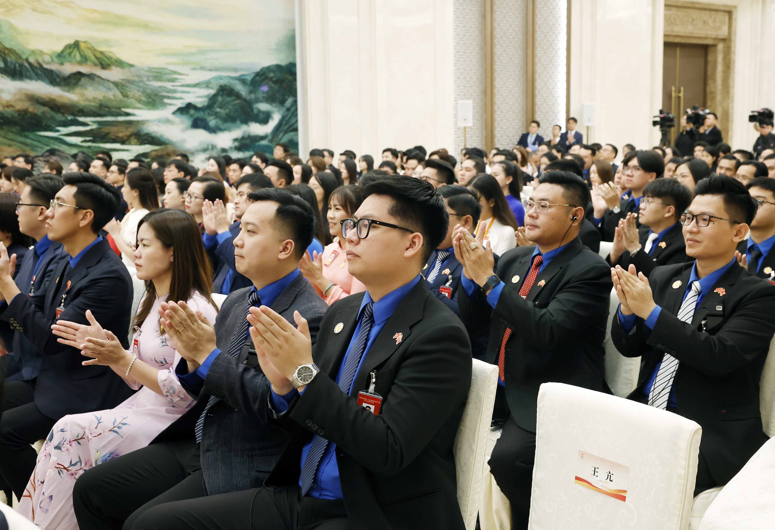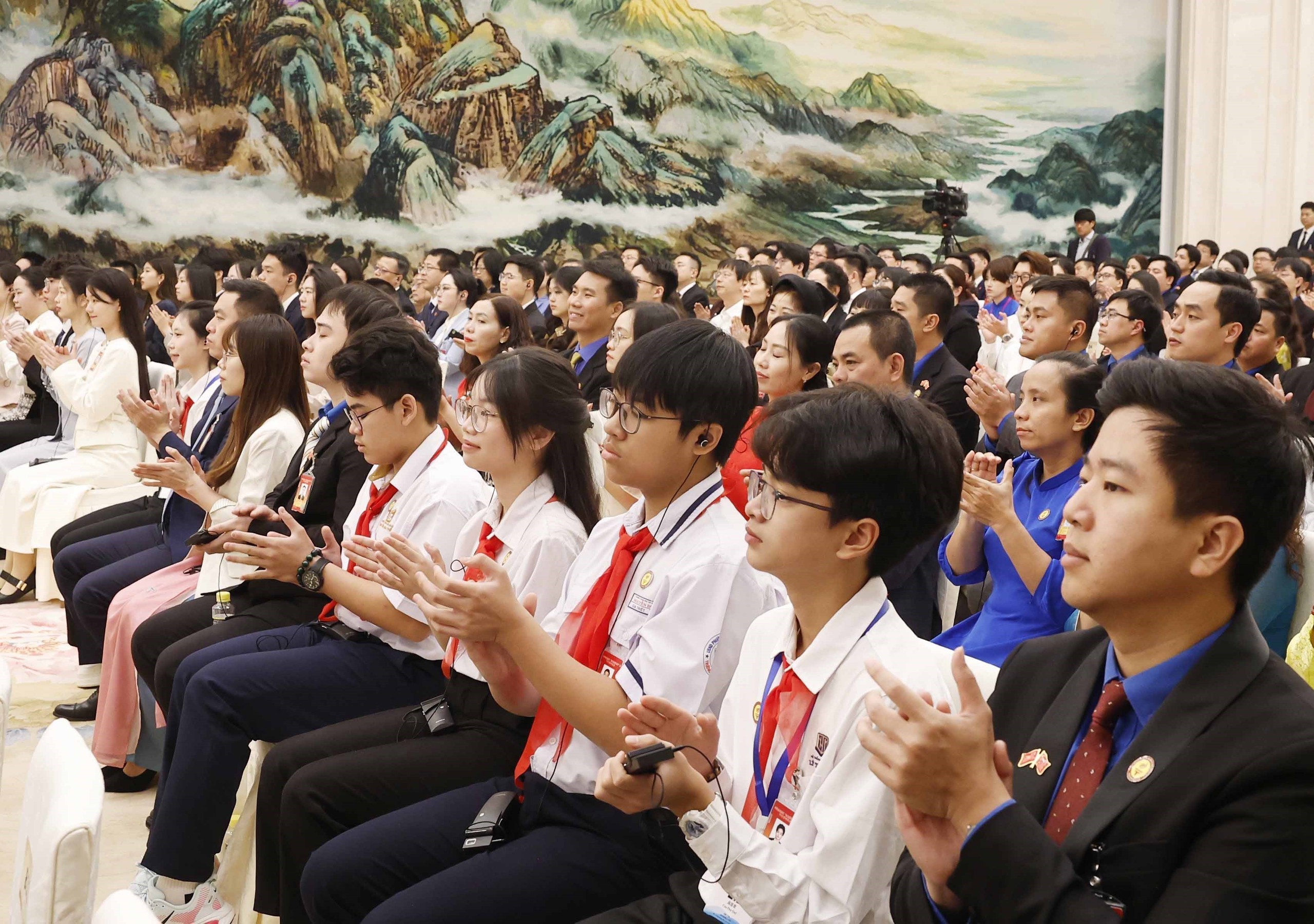 Đại biểu thanh niên Việt Nam - Trung Quốc tham gia chương trình “Hành trình Đỏ nghiên cứu, học tập” tại cuộc gặp gỡ với Tổng Bí thư, Chủ tịch nước Tô Lâm và Tổng Bí thư, Chủ tịch nước Trung Quốc Tập Cận Bình. Ảnh: Thống Nhất - TTXVN