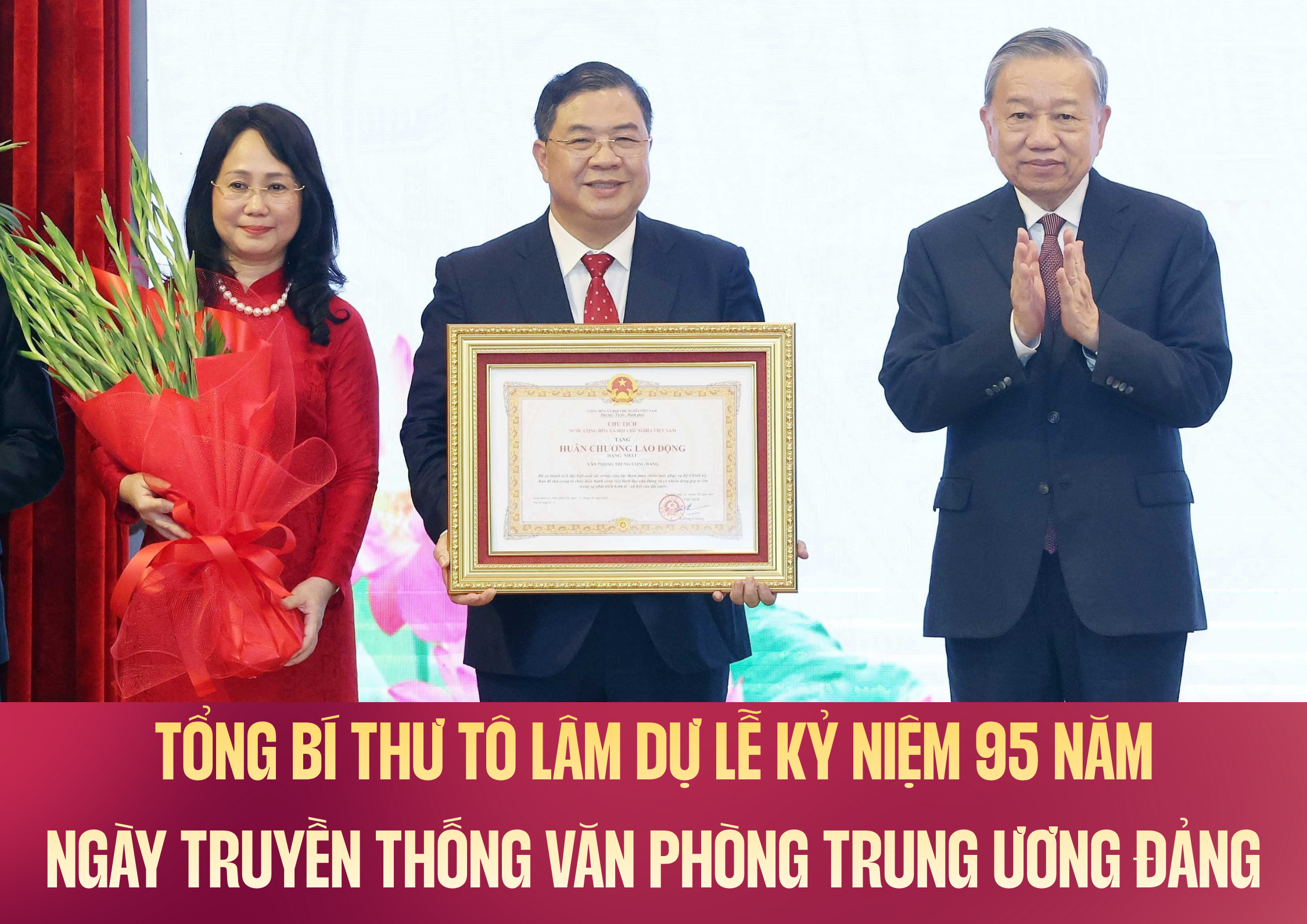 Chiều 18/10/2025, tại Hà Nội, Văn phòng Trung ương Đảng tổ chức trọng thể Lễ kỷ niệm 95 năm Ngày truyền thống Văn phòng Trung ương Đảng và văn phòng cấp ủy (18/10/1930 - 18/10/2025; đón nhận Huân chương Lao động hạng Nhất và tuyên dương các điển hình tiên tiến giai đoạn 2020 -2025. Tổng Bí thư Tô Lâm và các đồng chí lãnh đạo, nguyên lãnh đạo Đảng, Nhà nước tham dự.