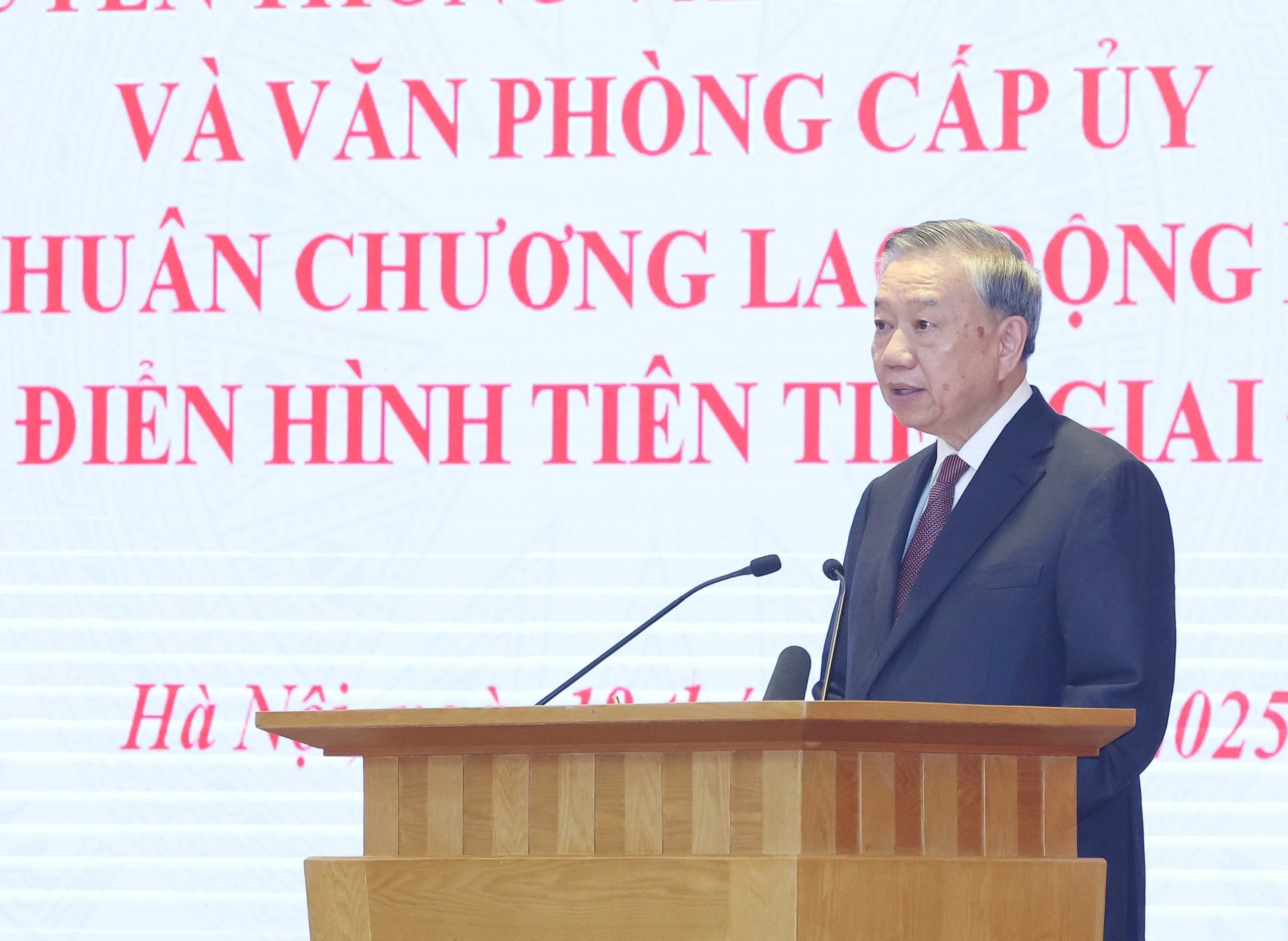 Phát biểu tại Lễ kỷ niệm, Tổng Bí thư Tô Lâm khẳng định, 95 năm qua, biết bao lượt cán bộ văn phòng cấp ủy đã hy sinh, chịu đựng gian khổ, giữ đúng nguyên tắc, giữ trọn kỷ luật, nhận phần khó về mình để công việc của Đảng thông suốt. Có những cống hiến không được nhắc tới trong văn bản nhưng in đậm trong chất lượng quyết định; có nhiều đêm không ngủ, có nhiều Chủ Nhật, ngày Lễ vẫn đi làm, có những thời gian “chạy nước rút” trước “giờ G” để một công văn kịp phát hành, một văn kiện ra đời đúng hạn, một hội nghị thành công, một chủ trương kịp đi vào cuộc sống...