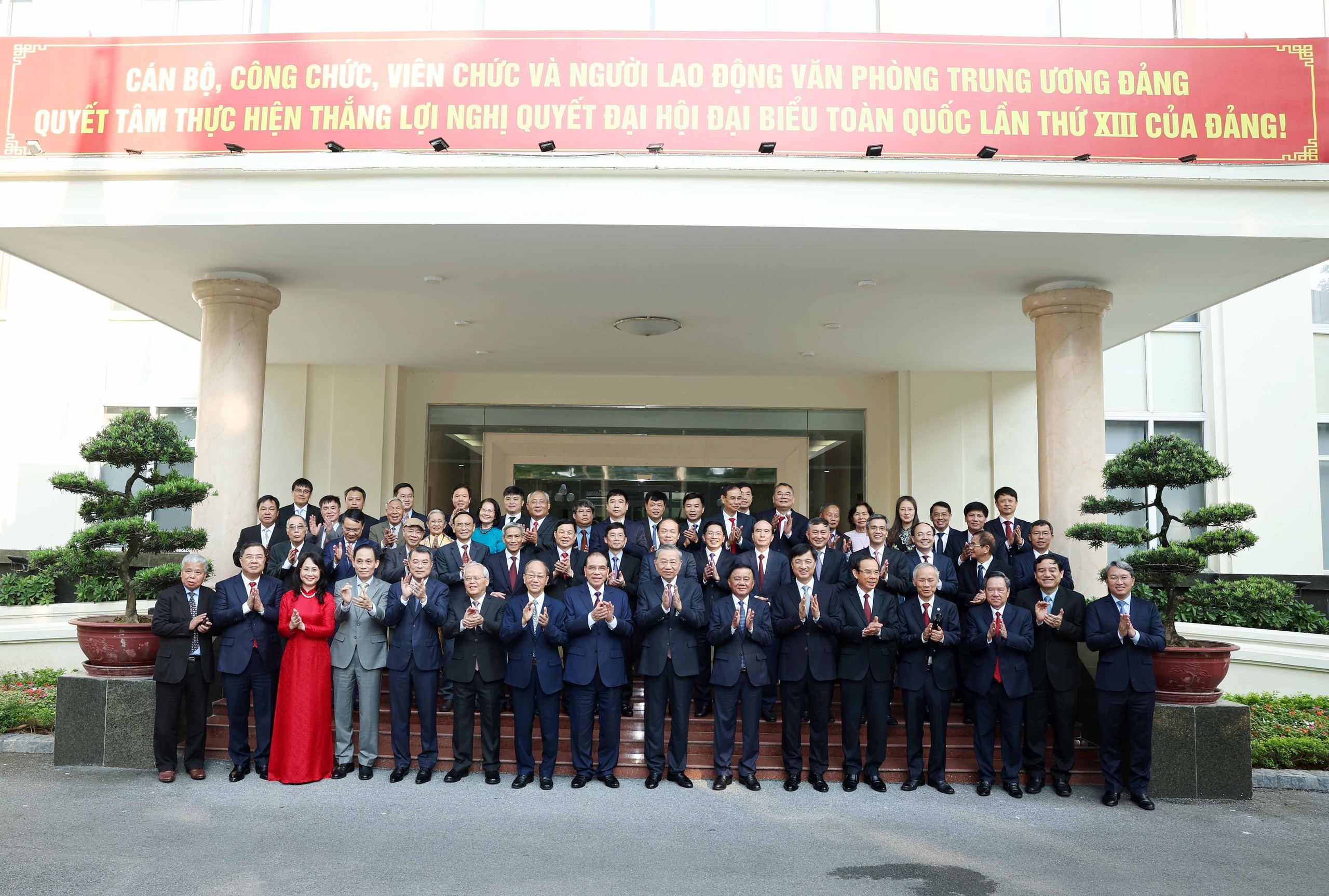Với bề dày truyền thống 95 năm của Văn phòng Trung ương Đảng và Văn phòng các cấp ủy, với tinh thần, ý thức, trách nhiệm Đảng viên và của người lao động, Tổng Bí thư tin tưởng toàn thể các đồng chí làm công tác Văn phòng trong hệ thống cấp ủy sẽ vượt qua mọi khó khăn, thách thức, hoàn thành mọi nhiệm vụ được giao, đóng góp xứng đáng vào mục tiêu phát triển của đất nước trong giai đoạn cách mạng mới, giữ vững và phát huy truyền thống “Tuyệt đối trung thành, đoàn kết, sáng tạo, tận tụy, chu đáo, giữ vững nguyên tắc” của Văn phòng Trung ương Đảng.