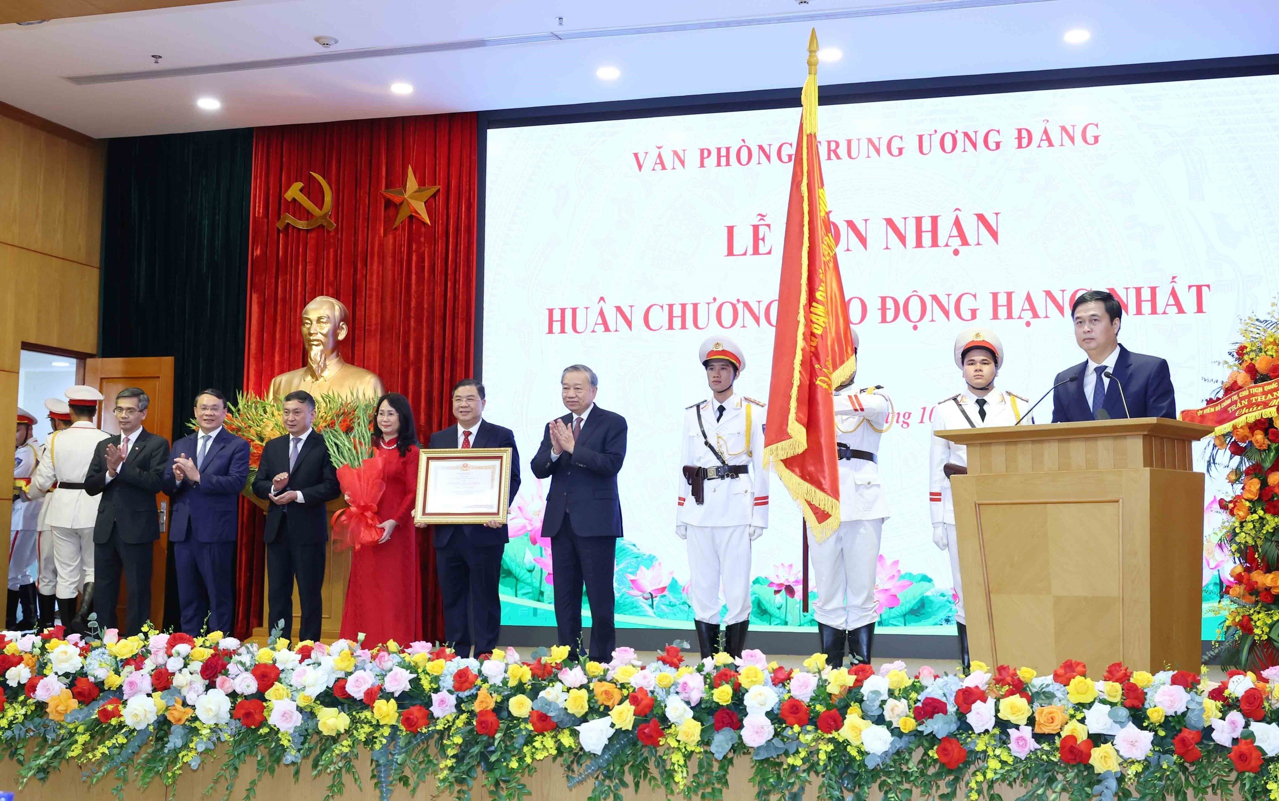 Tại Lễ kỷ niệm, thay mặt lãnh đạo Đảng, Nhà nước, Tổng Bí thư Tô Lâm đã trao tặng Huân chương Lao động hạng Nhất cho Văn phòng Trung ương Đảng đã có thành tích đặc biệt xuất sắc trong công tác tham mưu chiến lược phục vụ Bộ Chính trị, Ban Bí thư trong tổ chức điều hành công việc lãnh đạo của Đảng và có thành tích to lớn trong sự phát triển kinh tế - xã của đất nước.