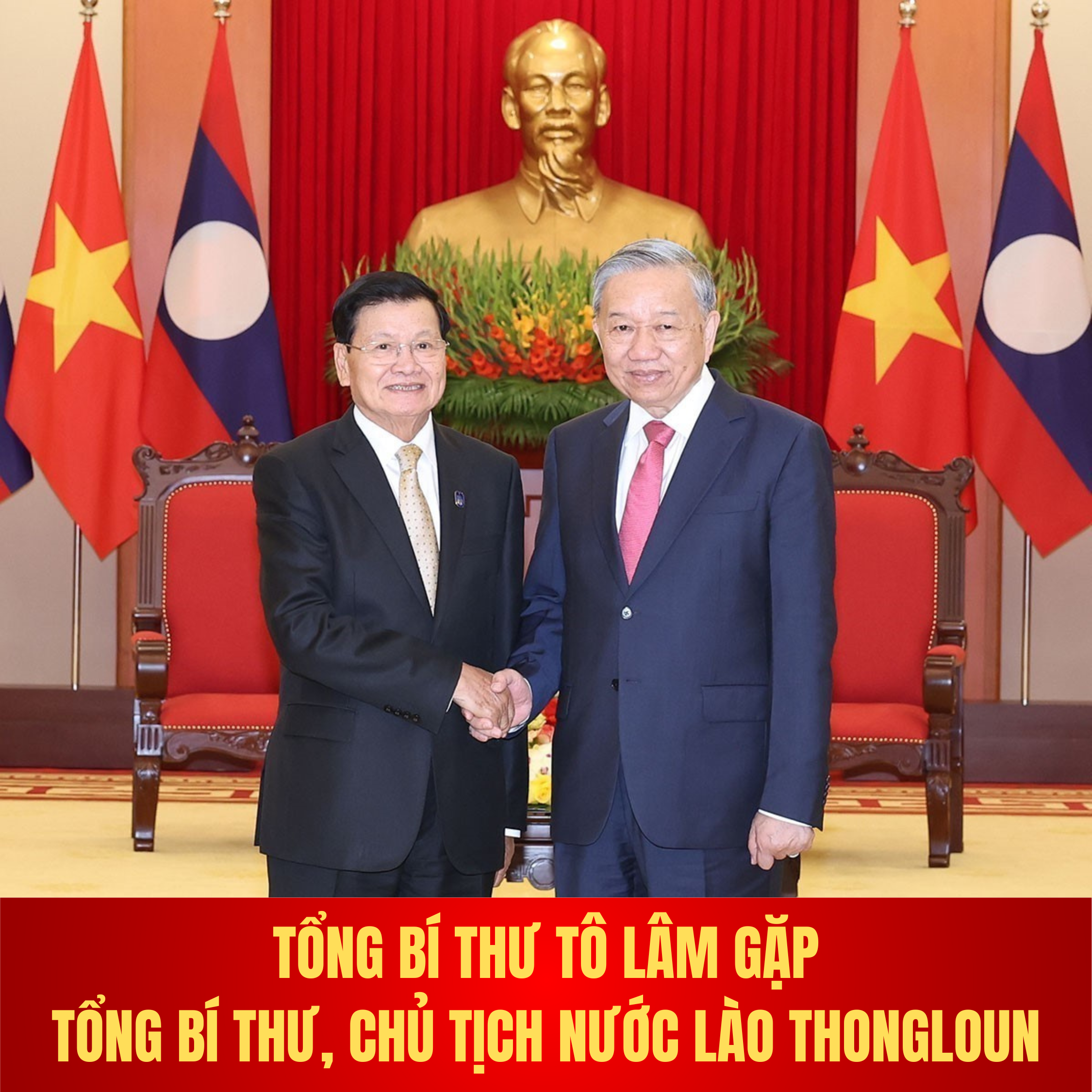 Trưa 25/10/2025, tại Trụ sở Trung ương Đảng, Tổng Bí thư Tô Lâm gặp Tổng Bí thư, Chủ tịch nước Lào Thongloun Sisoulith sang Việt Nam dự Lễ mở ký Công ước Liên hợp quốc về chống tội phạm mạng.
