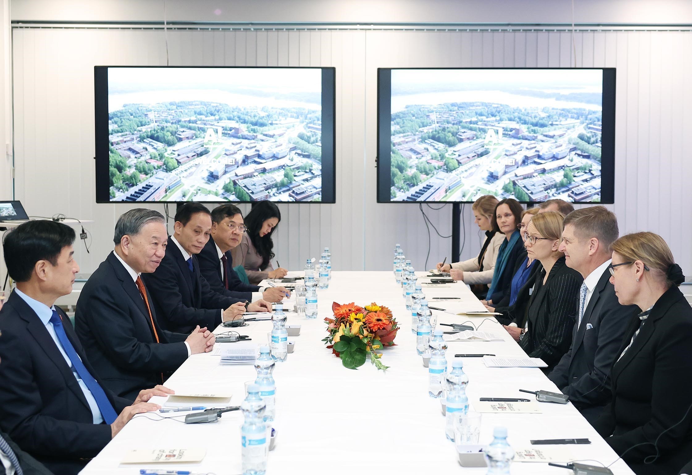 Tổng Bí thư Tô Lâm làm việc với Ban lãnh đạo Đại học Aalto. Ảnh: Thống Nhất – TTXVN
